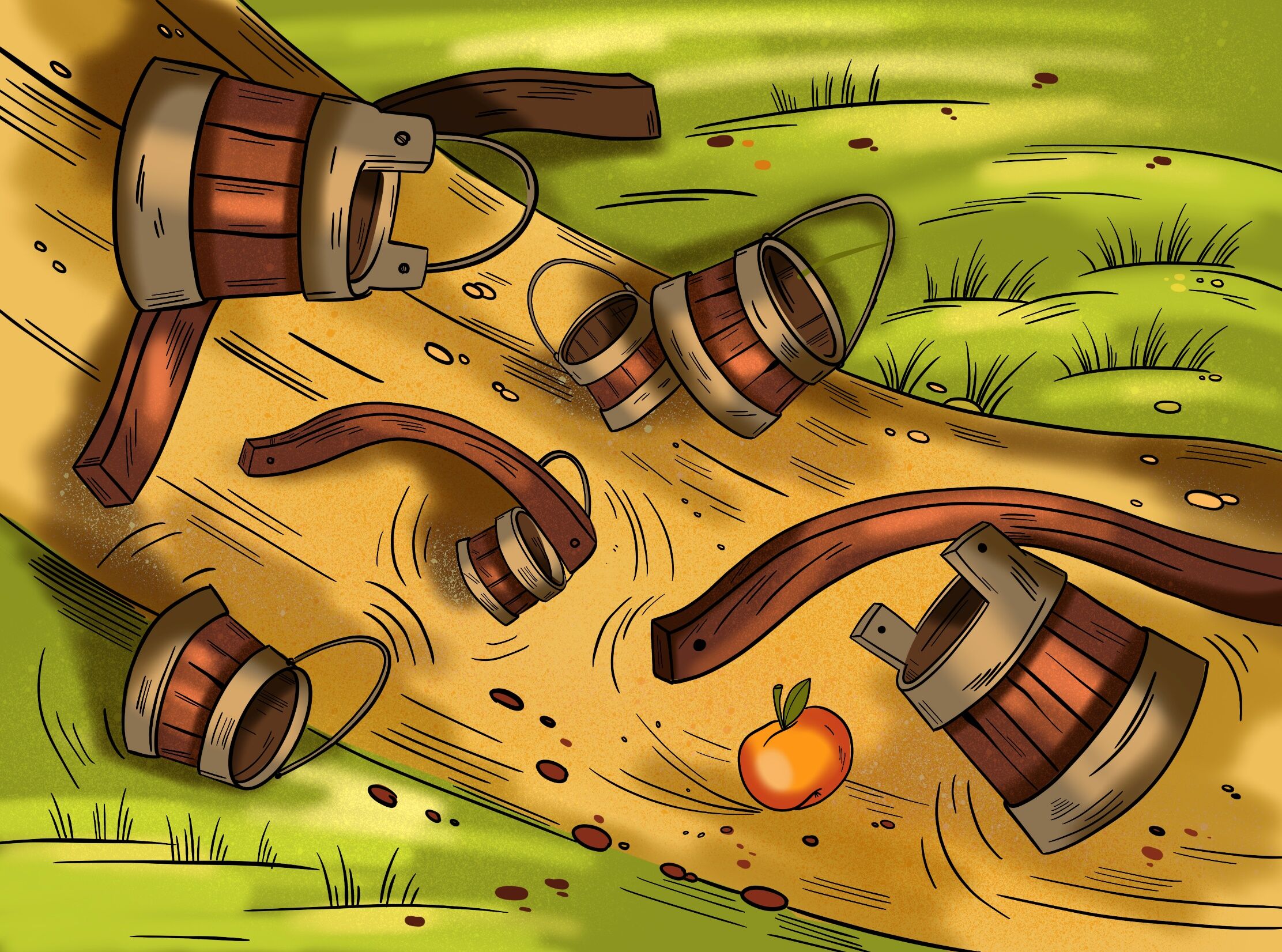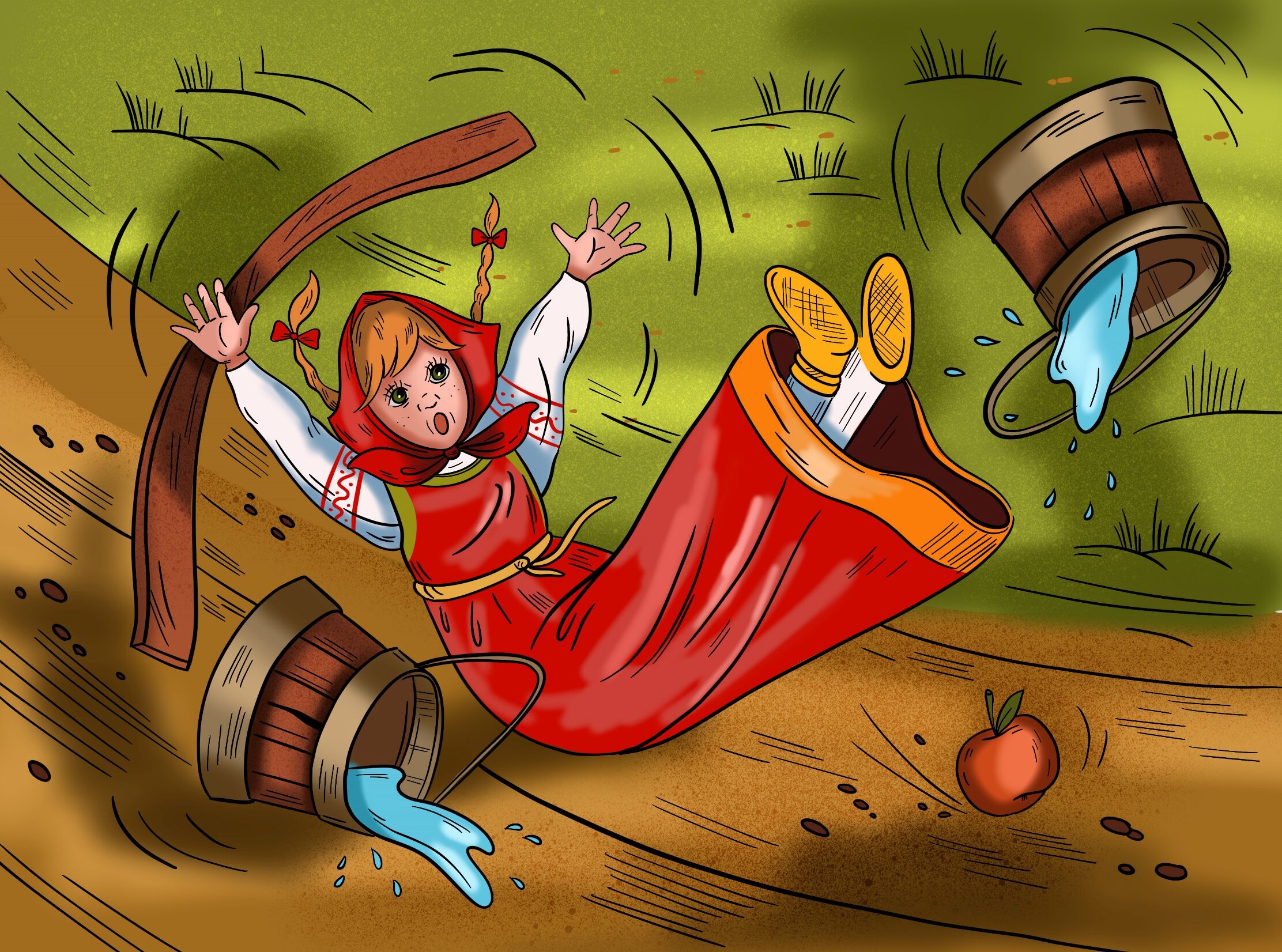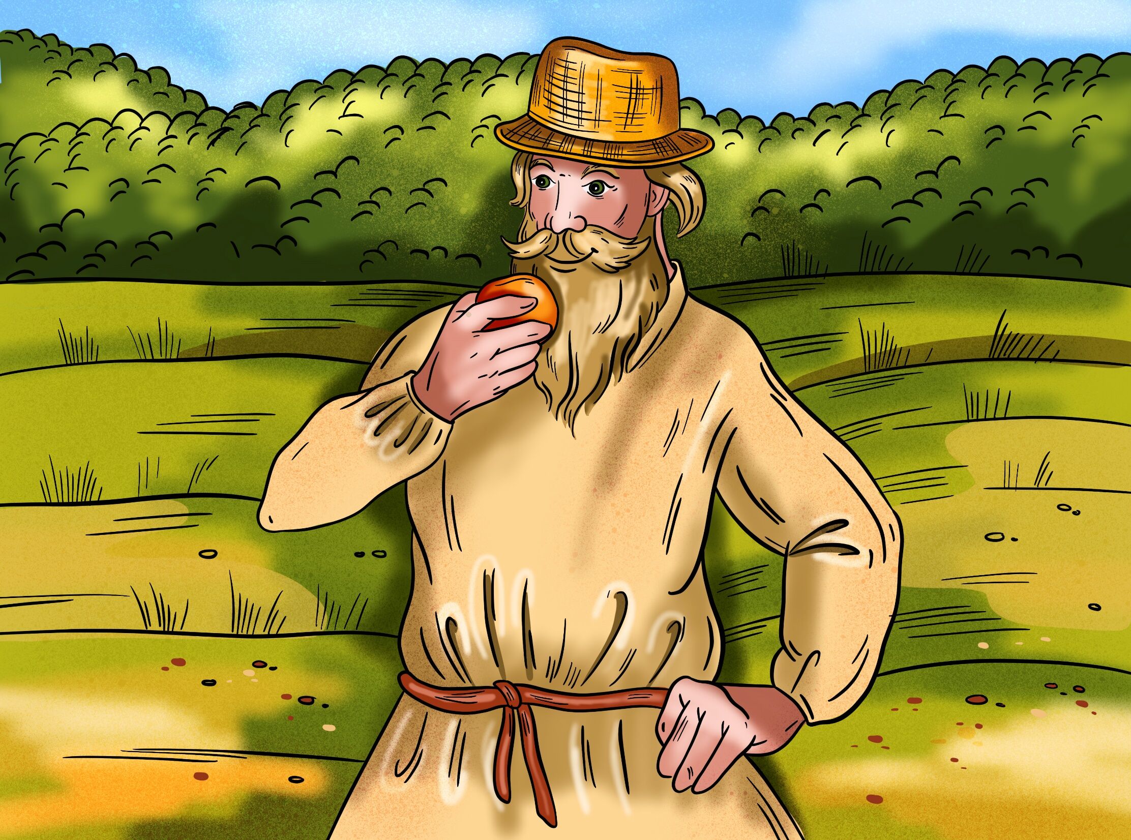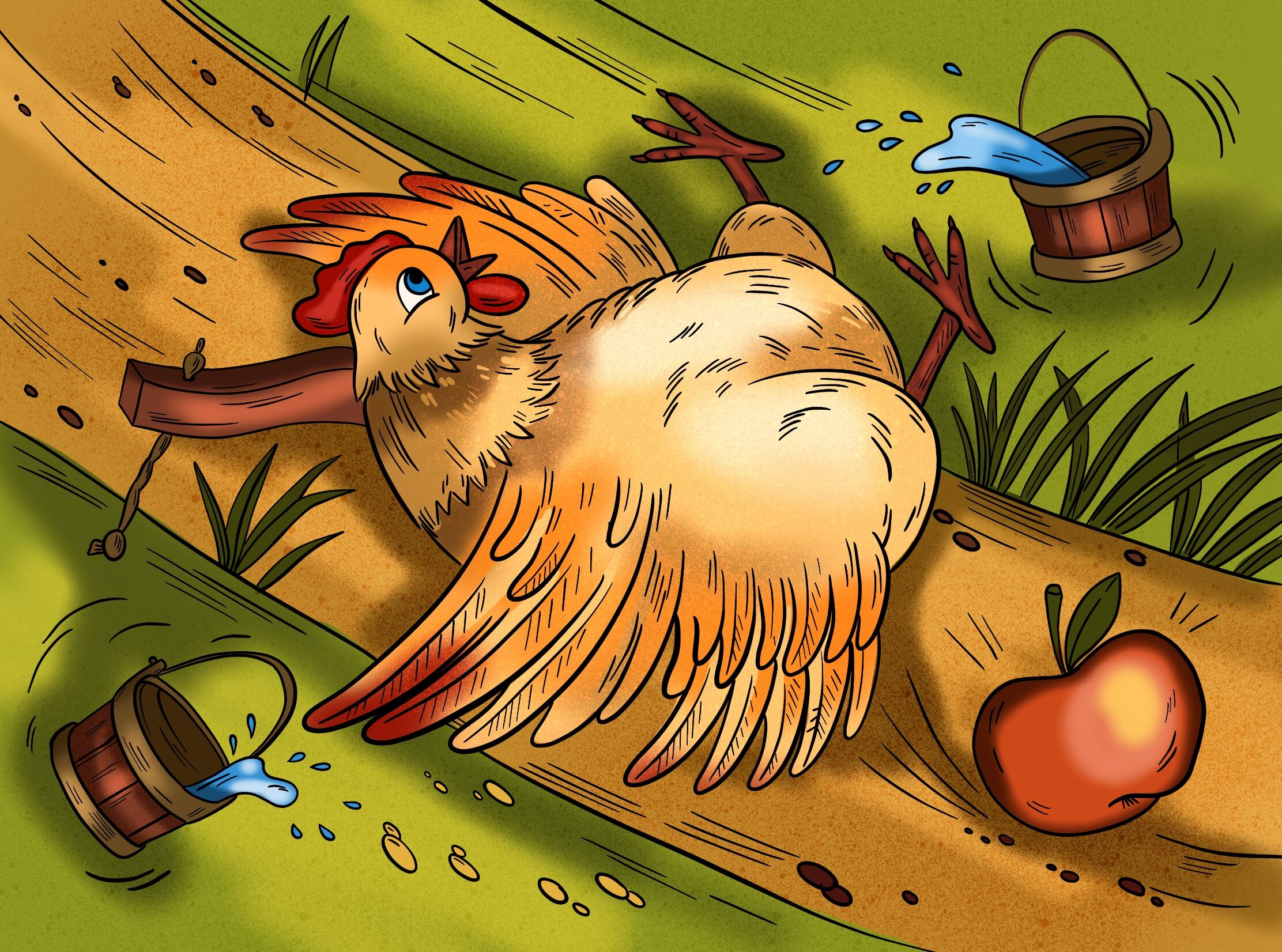 Сказка о том, как бабушка, внучка и курочка испугались наливного яблочка.