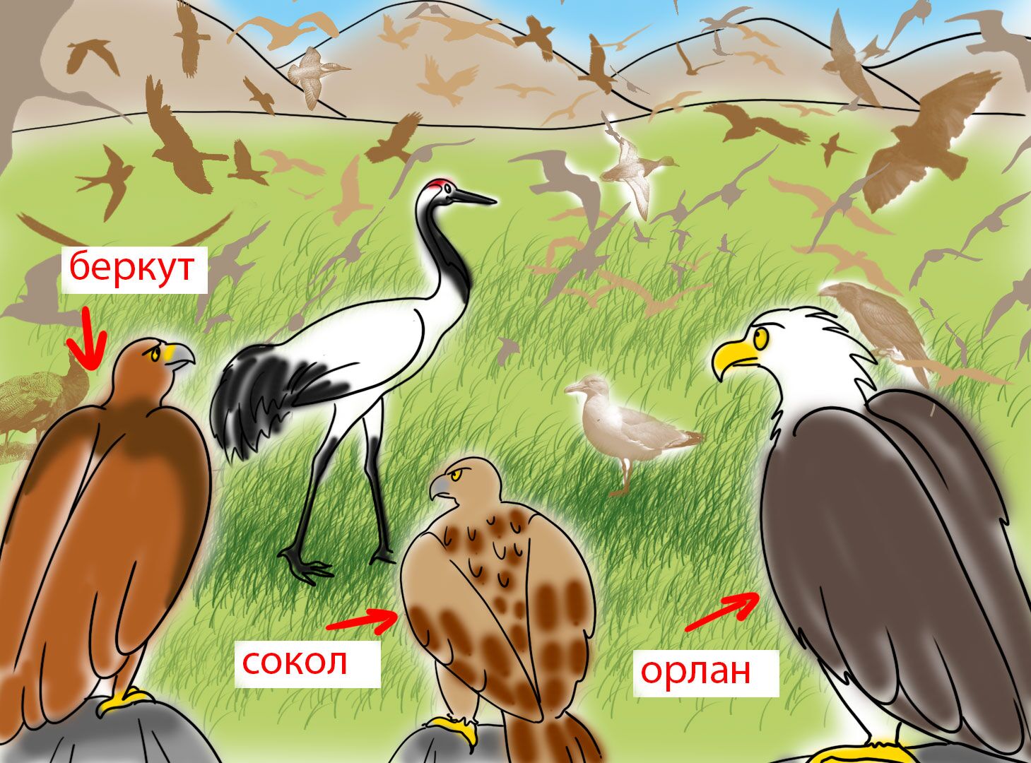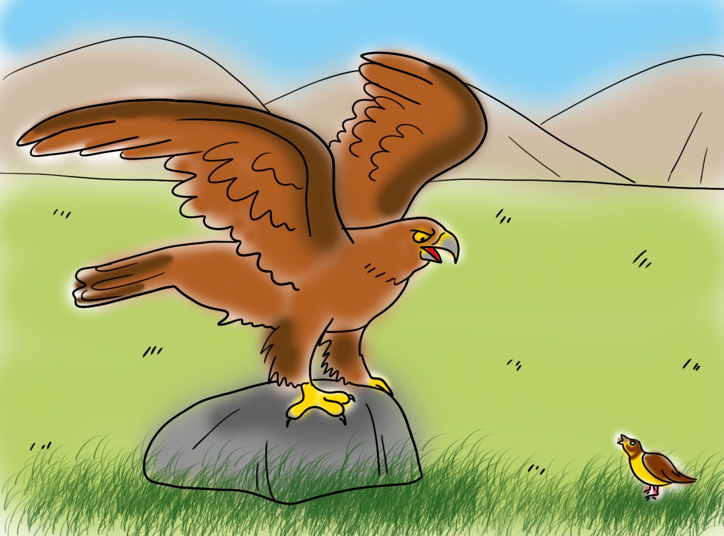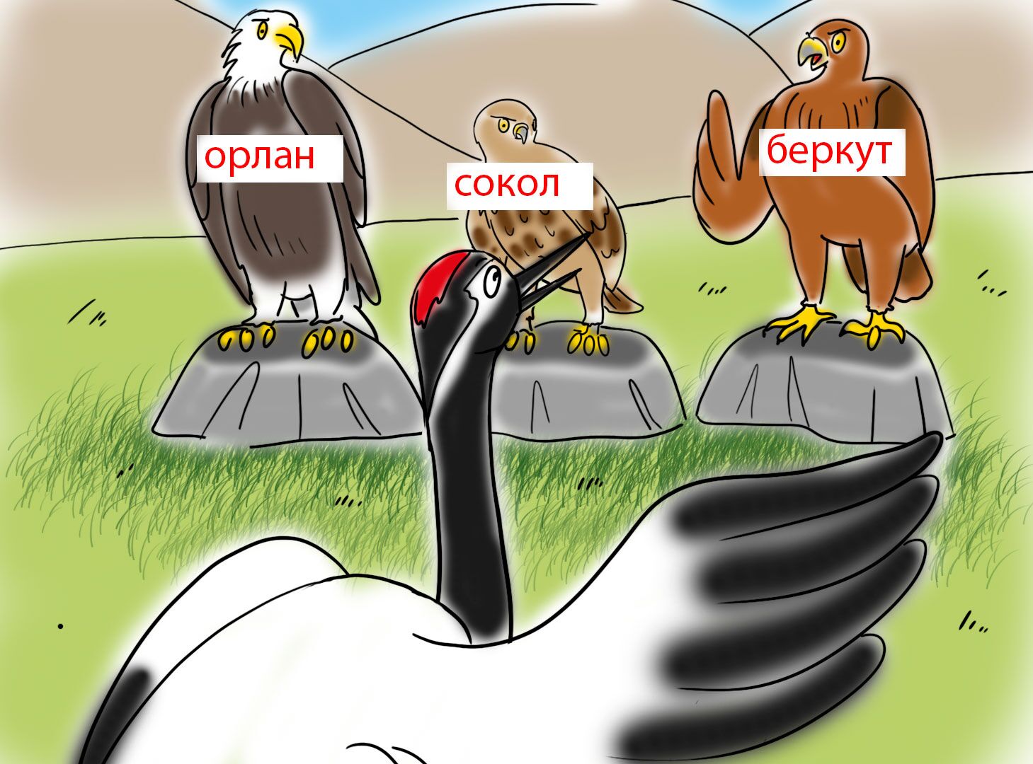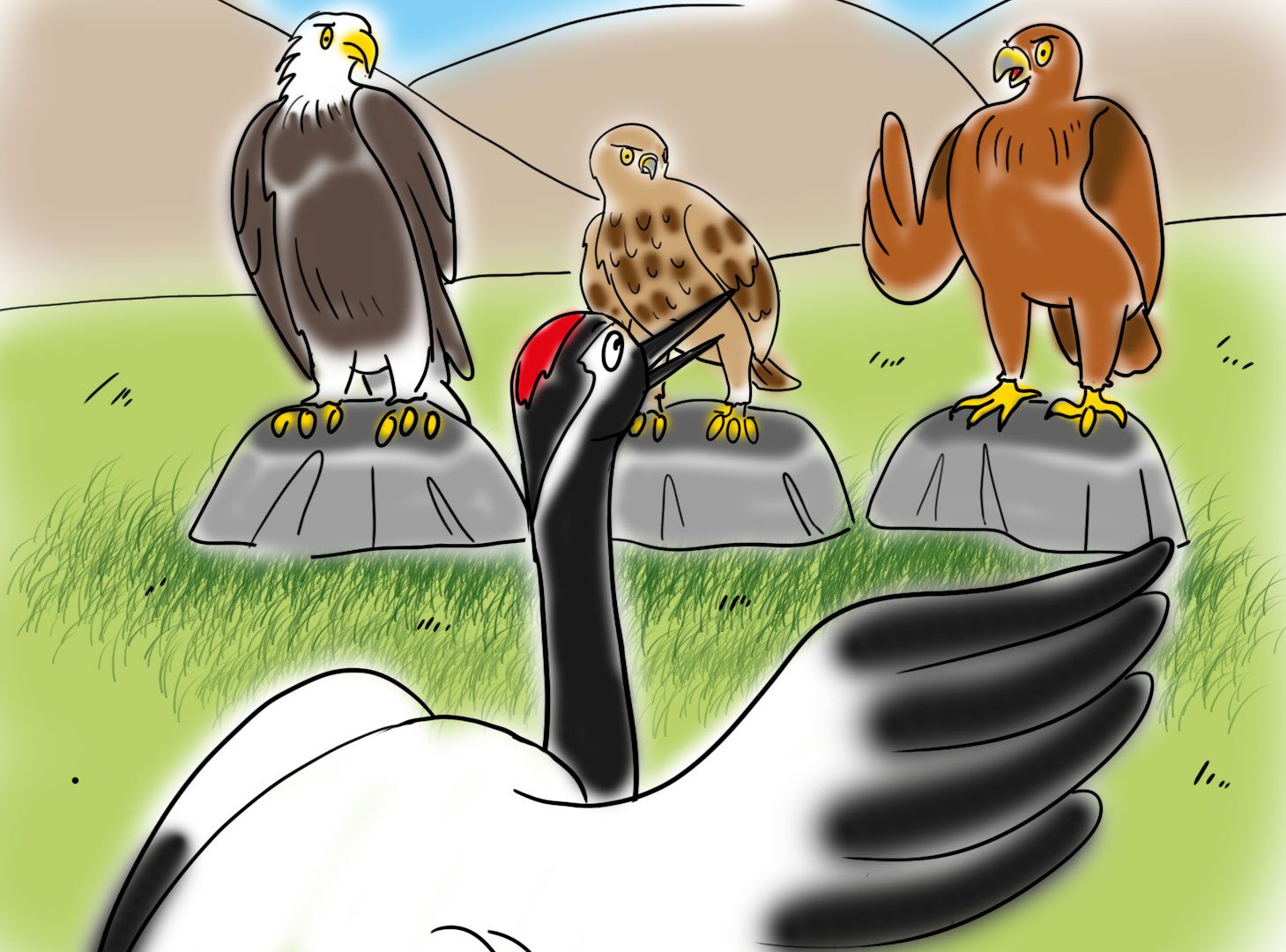История о том, как царственный журавль плохо поступил с одной маленькой птичкой и чем это закончилось.