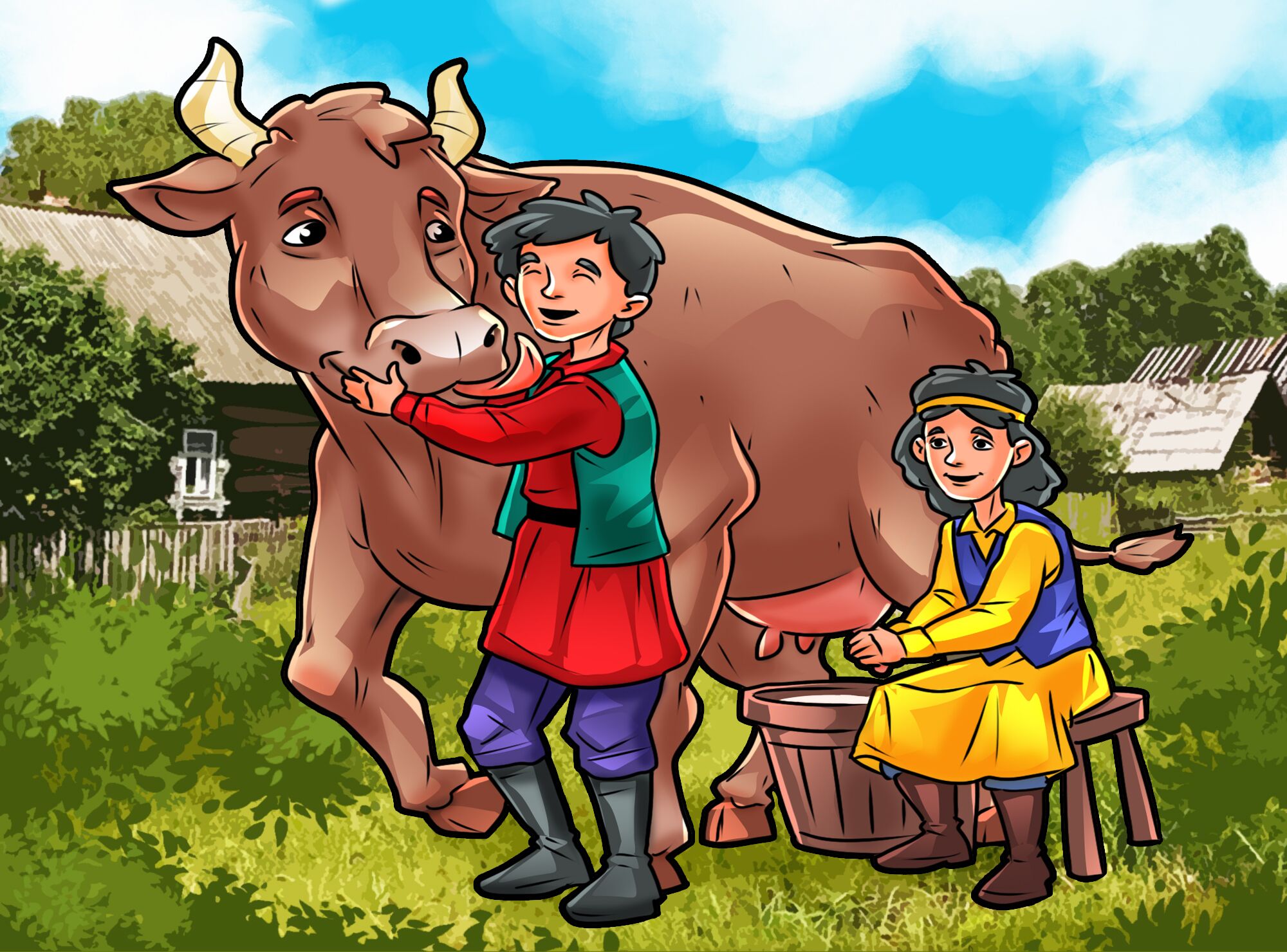 Жила-была в Башкирии дружная крестьянская семья – муж с женой, сын и дочь. И вот случилась большая беда – умерла мать и хозяйка. Мужик во второй раз женился, но молодая жена оказалась очень злой. Захотела она бурую корову убить, которую очень любили дети...