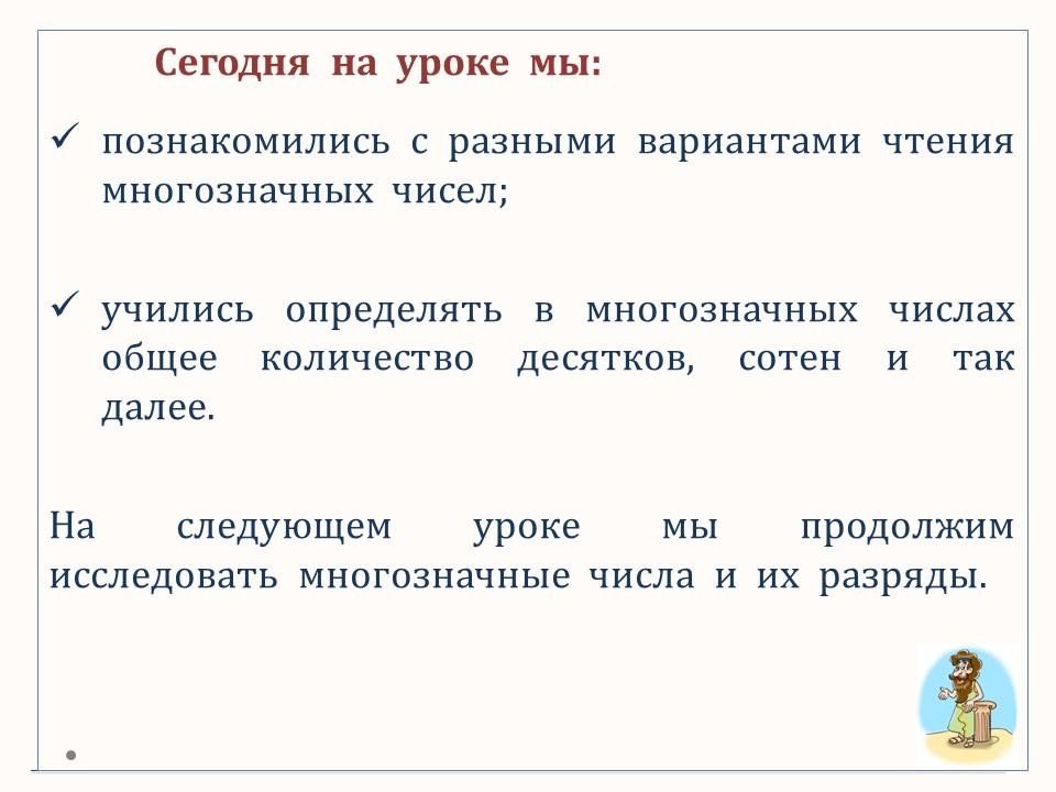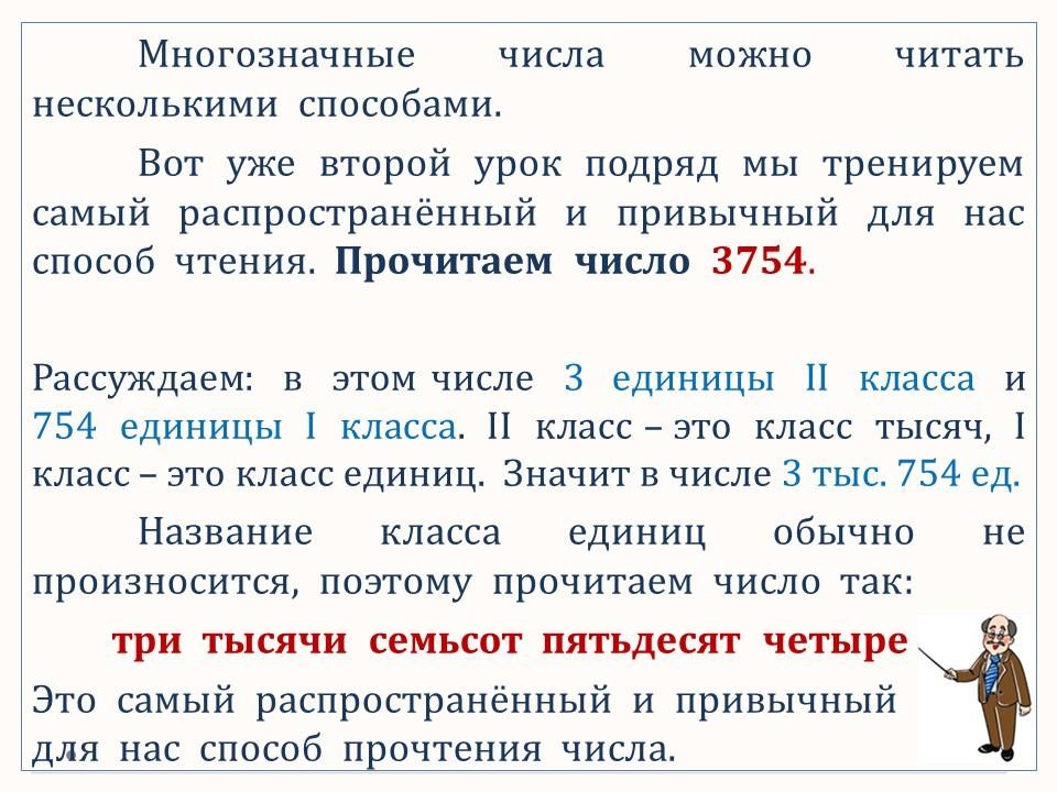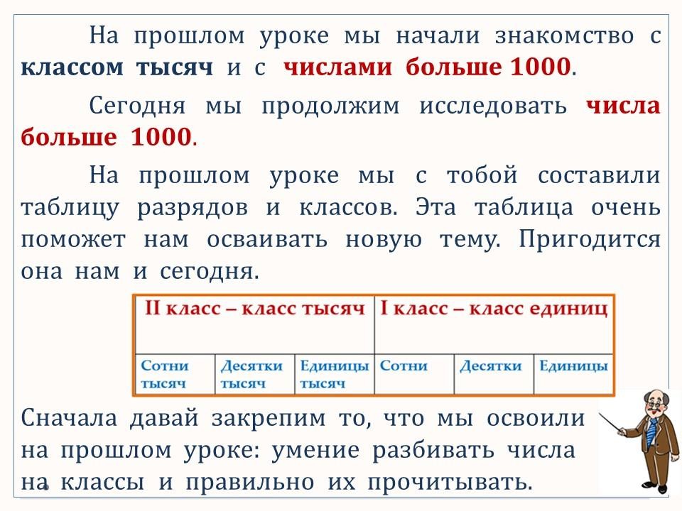 Продолжаем исследовать числа больше 1000. Учимся правильно читать и записывать многозначные числа.