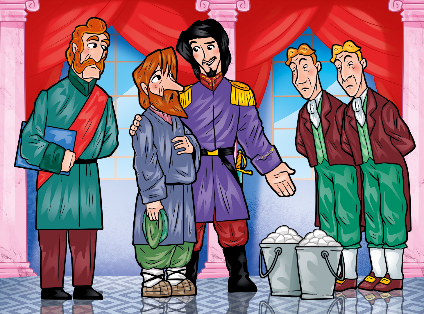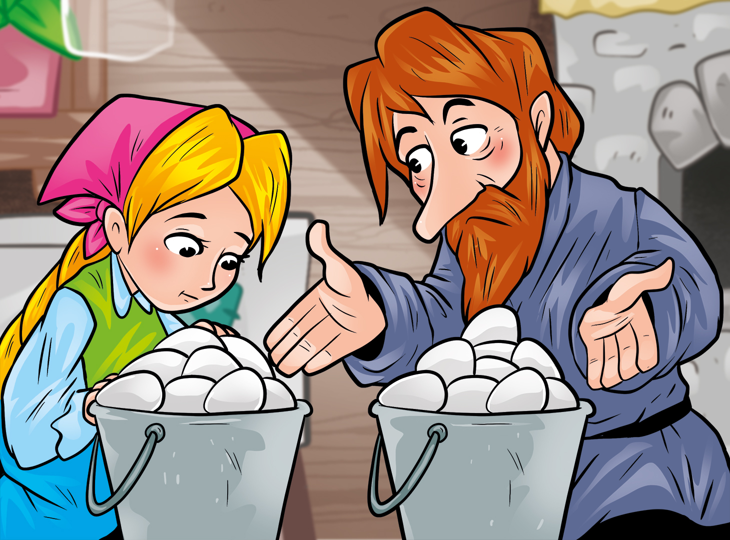 Случилось однажды на Руси такое дело – загадал царь бедняку и богачу сложные загадки. Богач ни одной не отгадал и в награду получил батогов. А у бедняка была смышлёная дочка семи годков. Она взялась отцу помогать.
