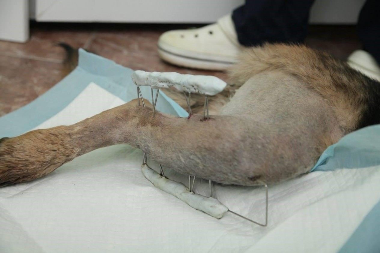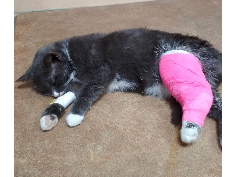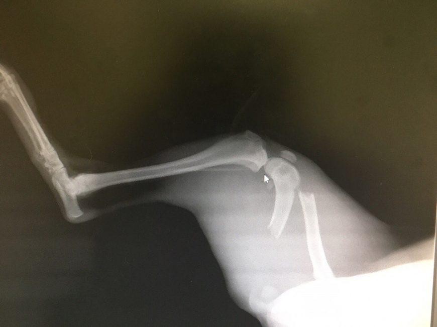 Первая помощь:Если перелом открытый – постарайтесь остановить кровь с помощью полотенца или марли. Обездвижьте травмированную часть тела.Отвезите к ветеринару.Лечение:Проводят операцию. Устанавливают специальные спицы в кости. Постепенно кости срастаются.