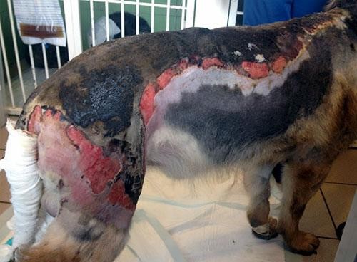Первая помощь:При ожоге первой степени промойте место ожога холодной водой. При второй или третьей степени – срочно везите животное к ветеринару. Оставьте на месте ожога влажную ткань.