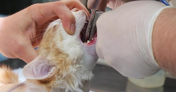 Симптомы:Рвотные позывыТрогает лапой мордуКашляетСлюни или пена из ртаДесна белеют