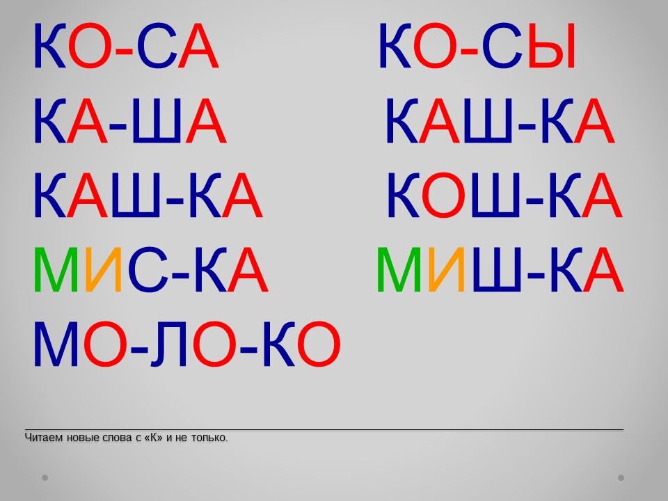 Электронный букварь с картинками – это надёжный, проверенный на нашем собственном опыте способ научить ребёнка читать. Букварь разработан опытным педагогом на основе многолетней практики. На этом уроке учим букву К.