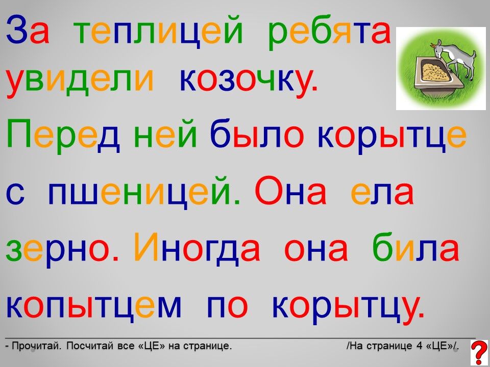 Электронный букварь с картинками – это надёжный, проверенный на нашем собственном опыте способ научить ребёнка читать. Букварь разработан опытным педагогом на основе многолетней практики. На этом уроке продолжаем изучать букву Е в открытых слогах. Изучаем Е в слоге ЦЕ.
