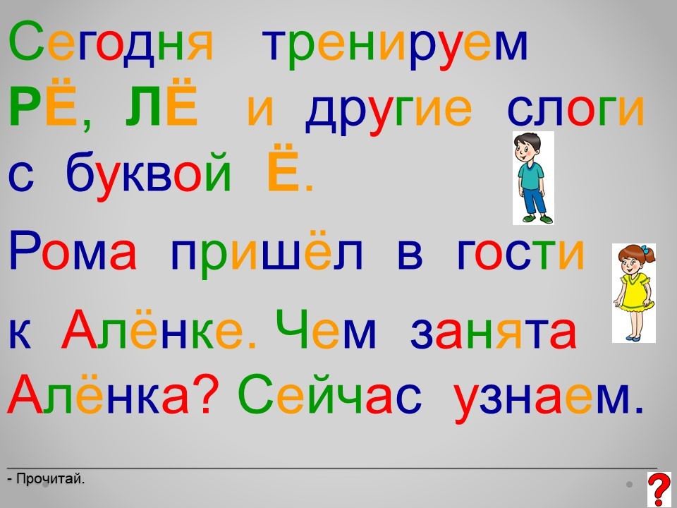 Электронный букварь с картинками – это надёжный, проверенный на нашем собственном опыте способ научить ребёнка читать. Букварь разработан опытным педагогом на основе многолетней практики. На этом уроке продолжаем изучать букву Ё. Изучаем Ё в открытых слогах РЁ и ЛЁ.