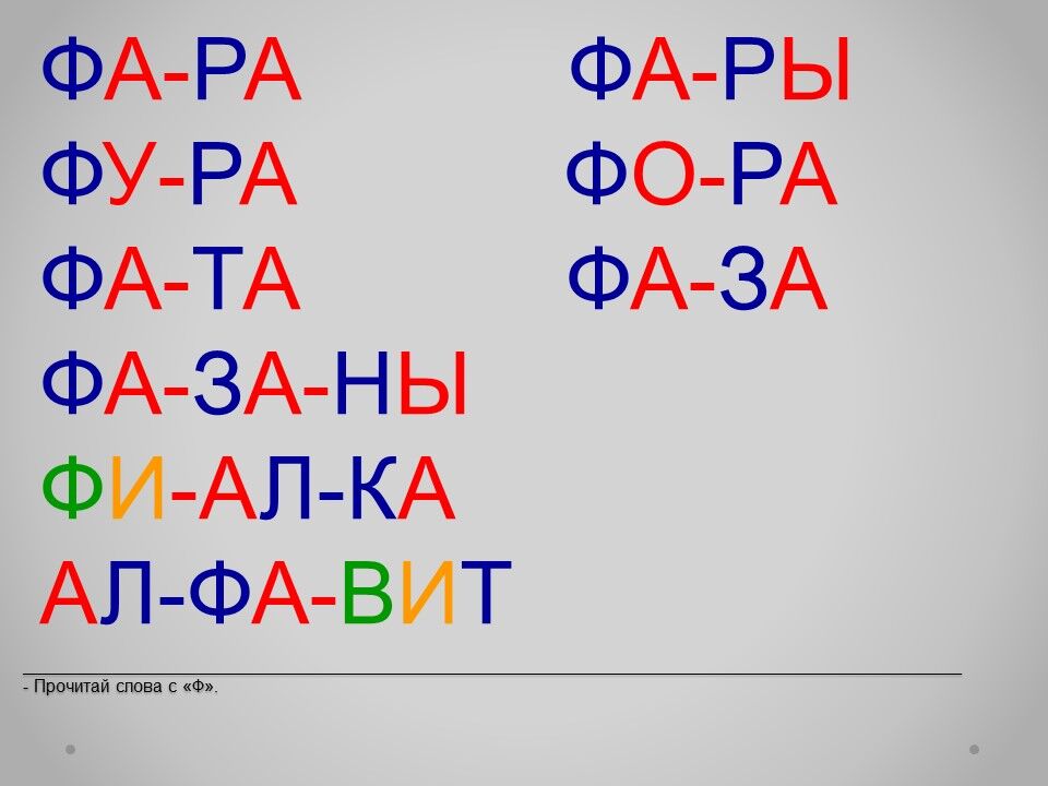 Электронный букварь с картинками – это надёжный, проверенный на нашем собственном опыте способ научить ребёнка читать. Букварь разработан опытным педагогом на основе многолетней практики. На это уроке учим букву Ф.