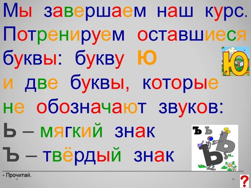 Электронный букварь с картинками – это надёжный, проверенный на нашем собственном опыте способ научить ребёнка читать. Букварь разработан опытным педагогом на основе многолетней практики. Завершаем наш курс изучением букв Ю, ь, ъ.