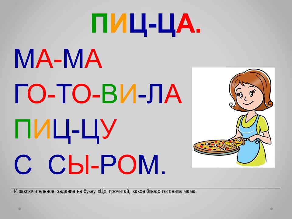 Электронный букварь с картинками – это надёжный, проверенный на нашем собственном опыте способ научить ребёнка читать. Букварь разработан опытным педагогом на основе многолетней практики. На этом уроке учим букву Ц.