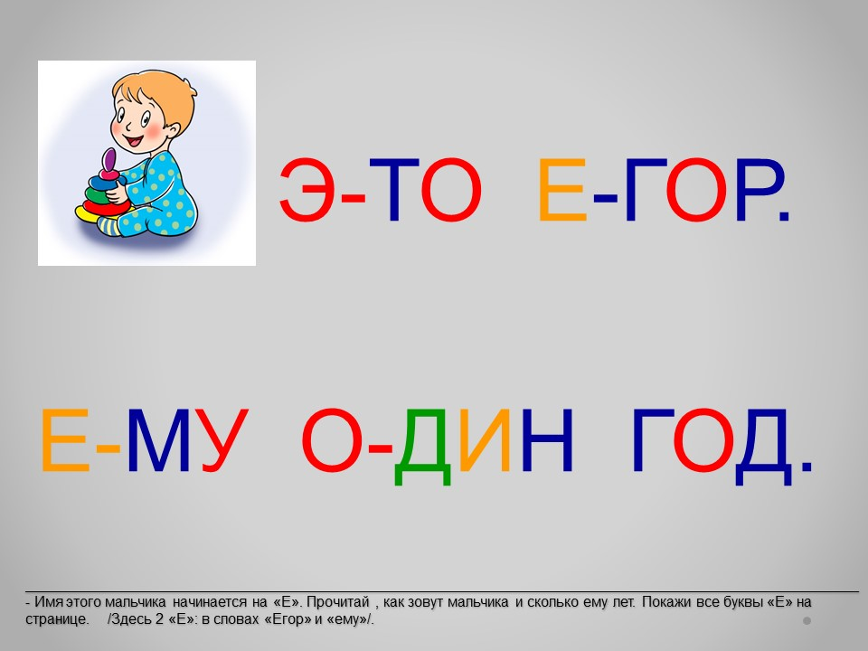 Электронный букварь с картинками – это надёжный, проверенный на нашем собственном опыте способ научить ребёнка читать. Букварь разработан опытным педагогом на основе многолетней практики. На этом уроке учим букву Е.