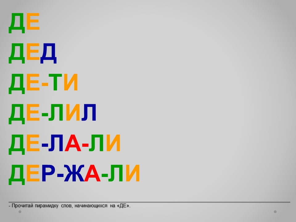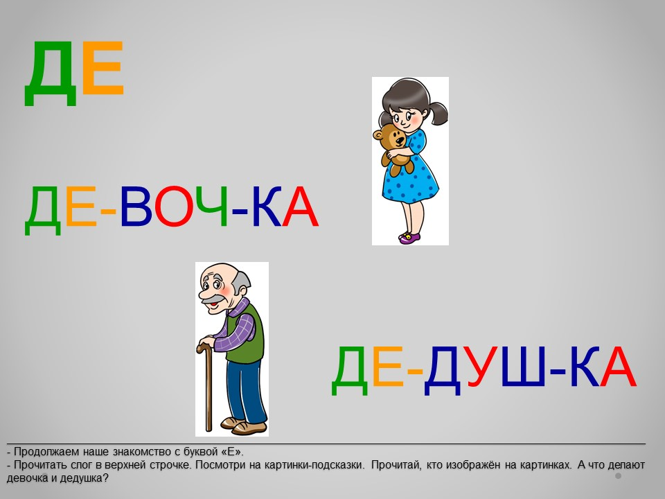 Электронный букварь с картинками – это надёжный, проверенный на нашем собственном опыте способ научить ребёнка читать. Букварь разработан опытным педагогом на основе многолетней практики. На этом уроке продолжаем изучать букву Е в открытых слогах. Изучаем Е в слоге ДЕ.