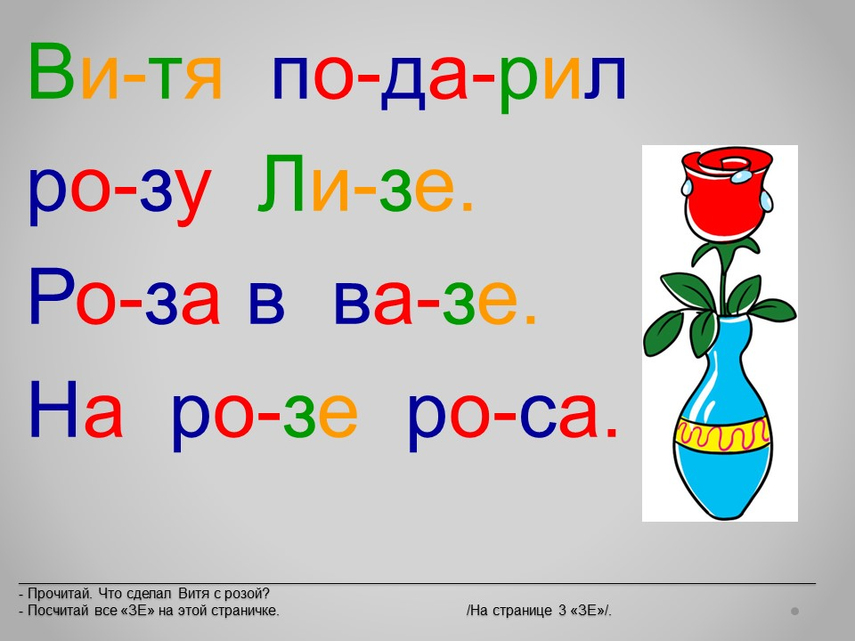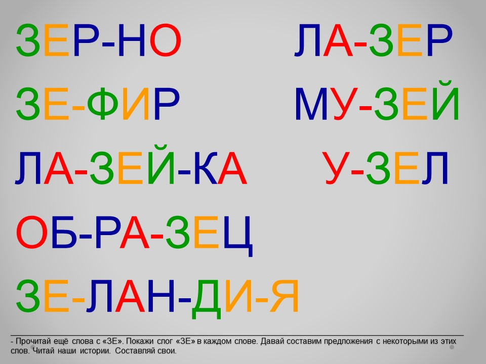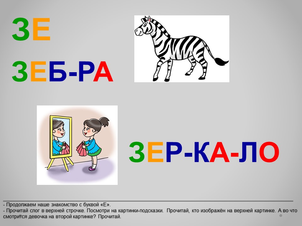 Электронный букварь с картинками – это надёжный, проверенный на нашем собственном опыте способ научить ребёнка читать. Букварь разработан опытным педагогом на основе многолетней практики. На этом уроке продолжаем изучать букву Е в открытых слогах. Изучаем Е в слоге ЗЕ.