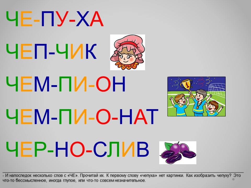 Электронный букварь с картинками – это надёжный, проверенный на нашем собственном опыте способ научить ребёнка читать. Букварь разработан опытным педагогом на основе многолетней практики. На этом уроке продолжаем изучать букву Е в открытых слогах. Изучаем Е в слоге ЧЕ.