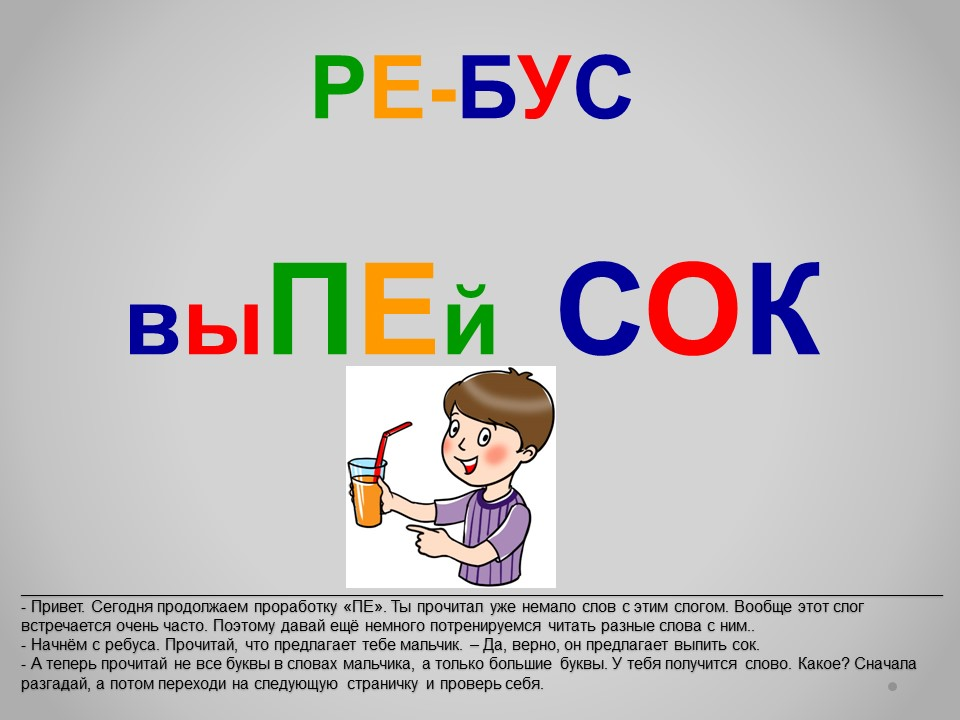 Электронный букварь с картинками – это надёжный, проверенный на нашем собственном опыте способ научить ребёнка читать. Букварь разработан опытным педагогом на основе многолетней практики. На этом уроке продолжаем изучать букву Е в открытых слогах. Изучаем Е в слоге ПЕ.