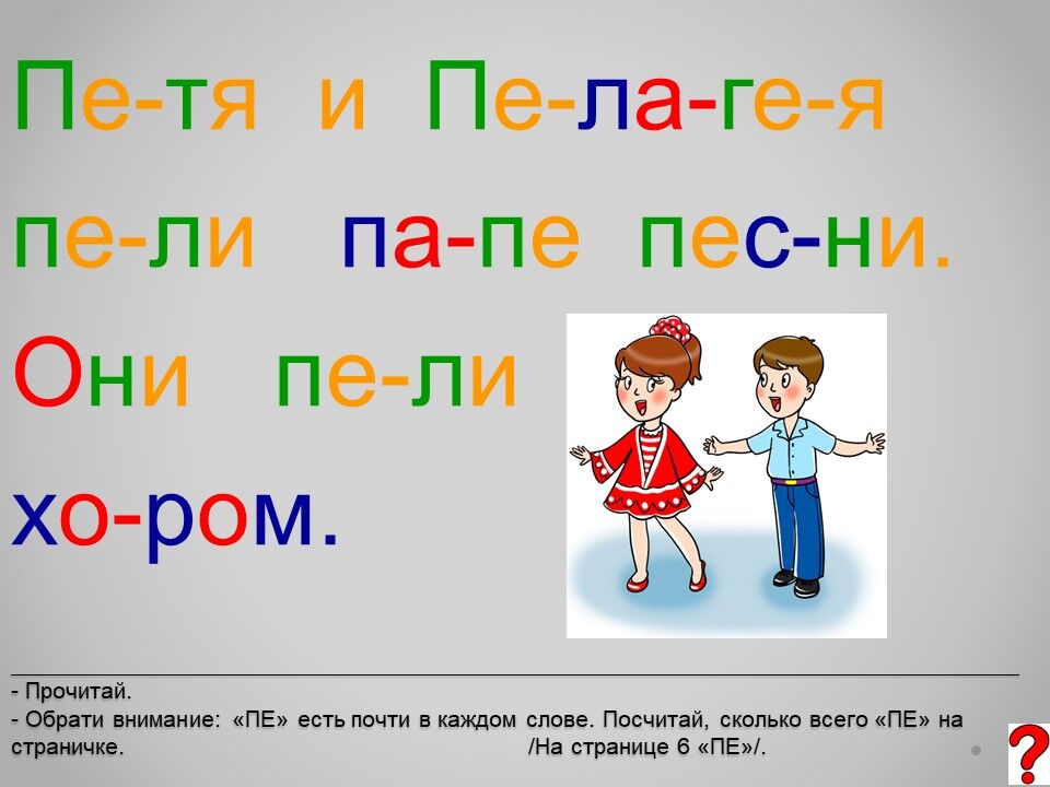 Электронный букварь с картинками – это надёжный, проверенный на нашем собственном опыте способ научить ребёнка читать. Букварь разработан опытным педагогом на основе многолетней практики. На этом уроке продолжаем изучать букву Е в открытых слогах. Изучаем Е в слоге ПЕ.
