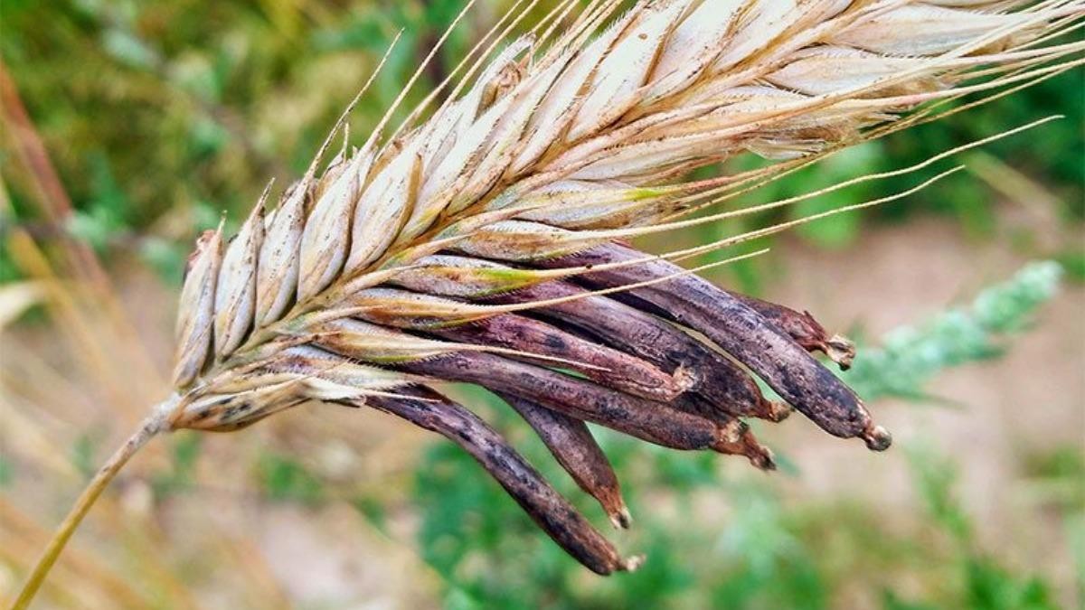 На некоторых зерновых культурах поселяется гриб спорынья. У пораженных растений здоровые зерновки превращаются в ядовитые черно-фиолетовые рожки, плотные сплетения нитей грибницы спорыньи. Попав с мукой в пищу, они могут вызвать тяжелое отравление.