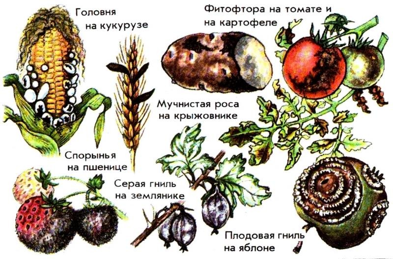 Среди грибов немало паразитов. Они вызывают различные болезни растений, животных и человека. Особенно большой вред грибы-паразиты наносят сельскому и лесному хозяйству