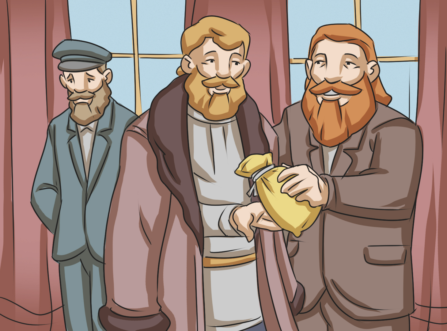 Один бедняк зажарил своего единственного гуся и поделился с барином. Барин за это щедро его вознаградил. А другой мужик, богатый, узнал об этом и решил нажиться на барине. И в результате остался ни с чем.