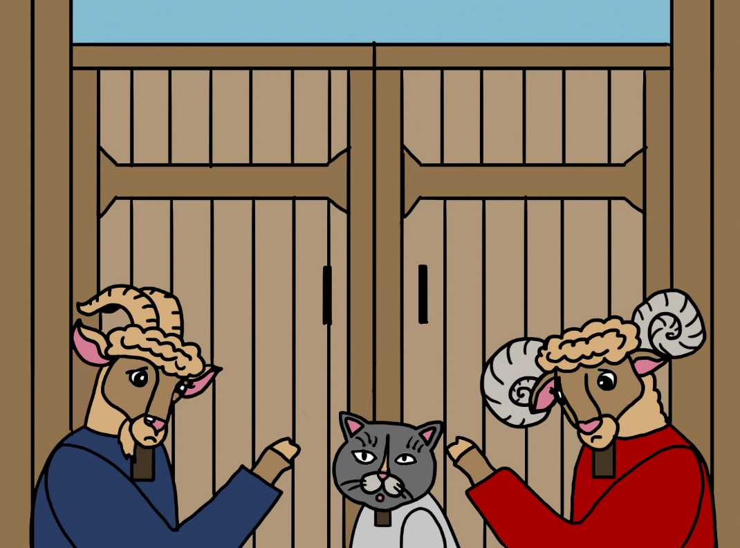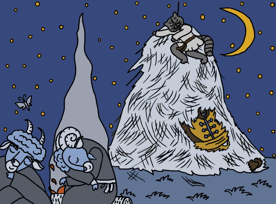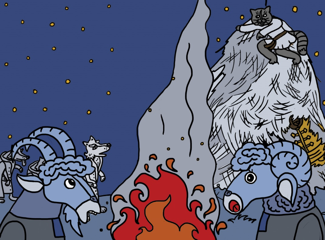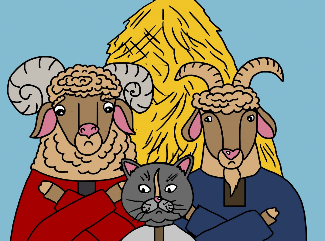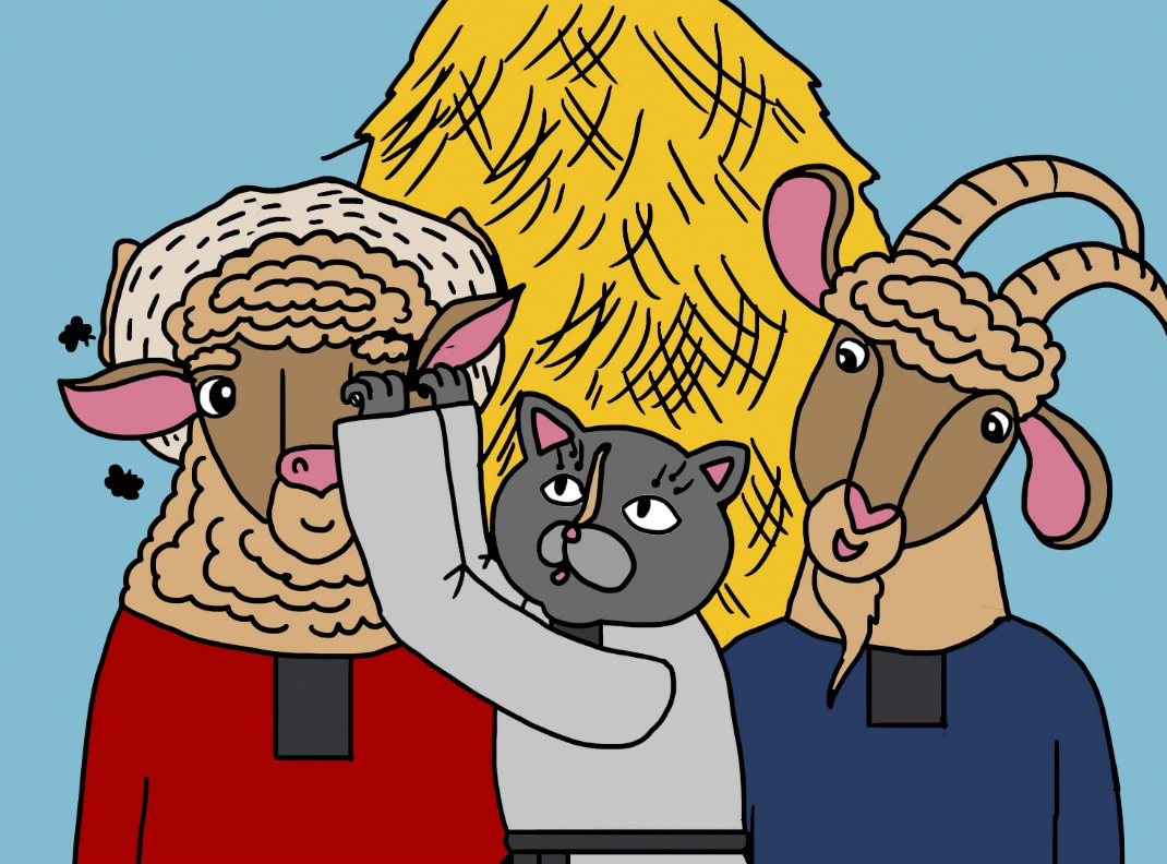 Кот, козёл да баран жили в деревне. Жили мирно, никого не трогали, пока однажды не навлёк кот на всех беду. Пришлось всем троим удрать из дому, а в лесу жизнь суровая, бродят хищники...