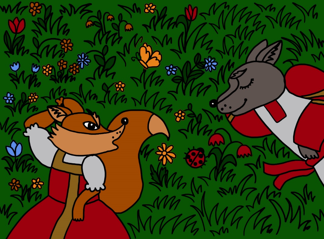 В одном лесу жили вместе лисичка и волчок. Прикупили они однажды медку. А лиса жуть как сладкое любила. Стала она замышлять, как весь медок слопать и не попасться...