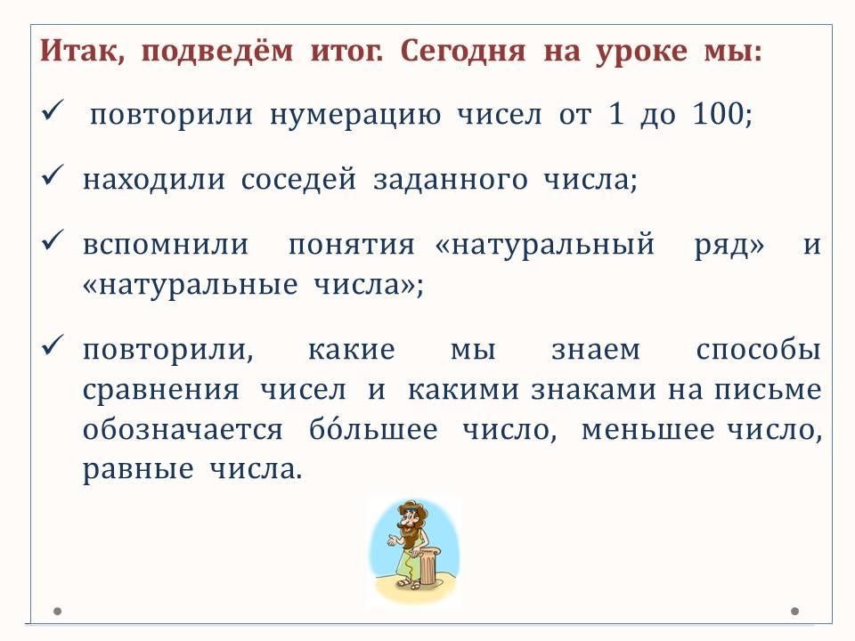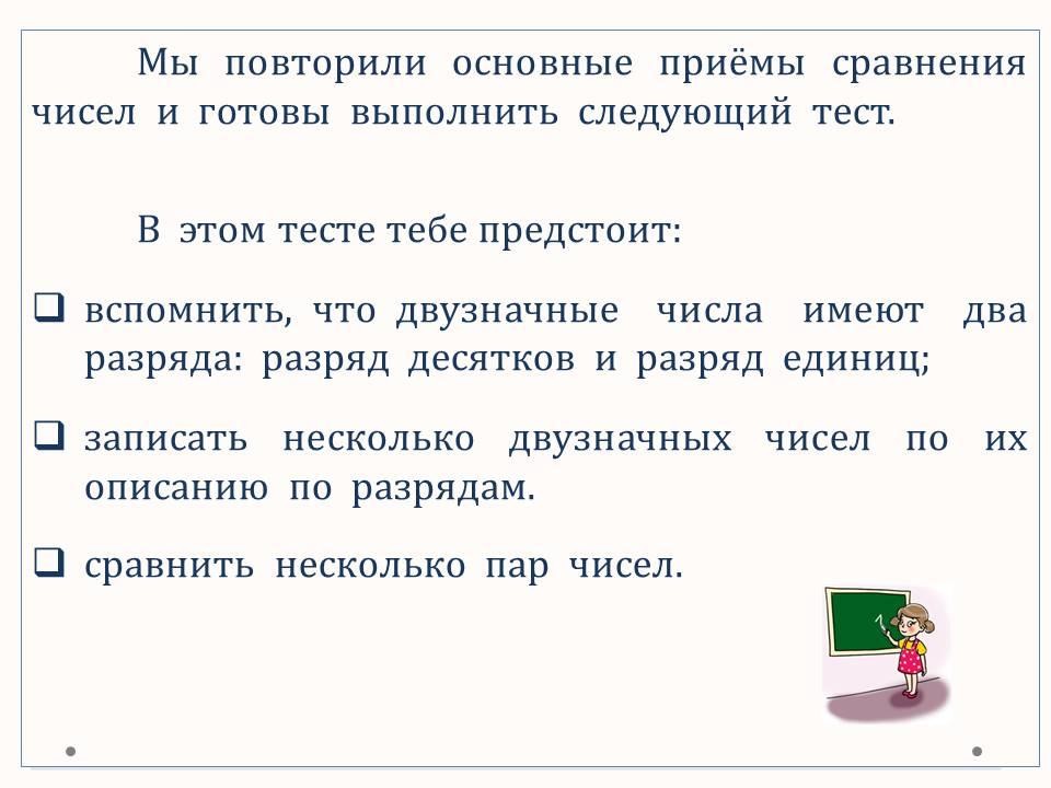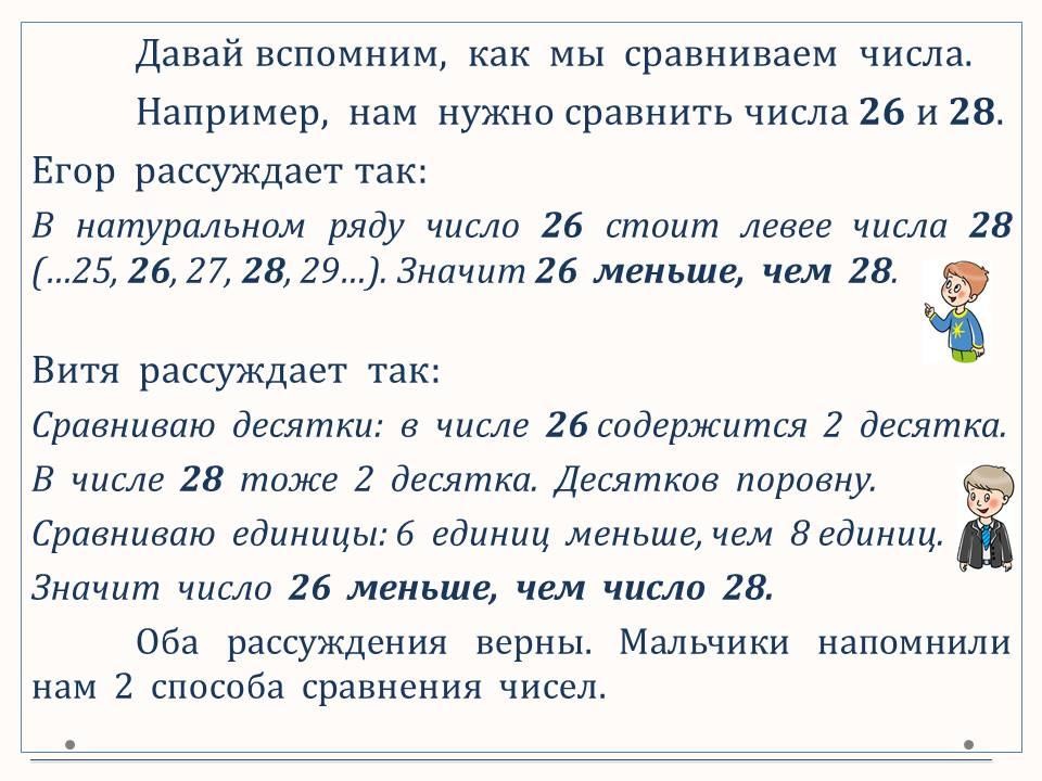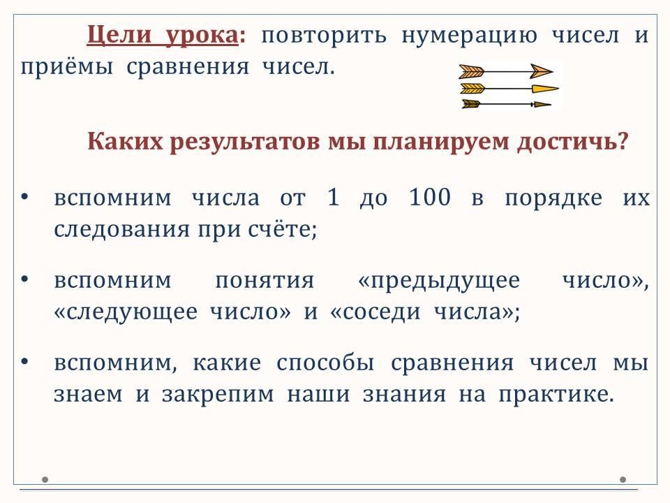 Начинаем учебный год с повторения. Вспомним нумерацию чисел от 1 до 100 и приёмы сравнения чисел.