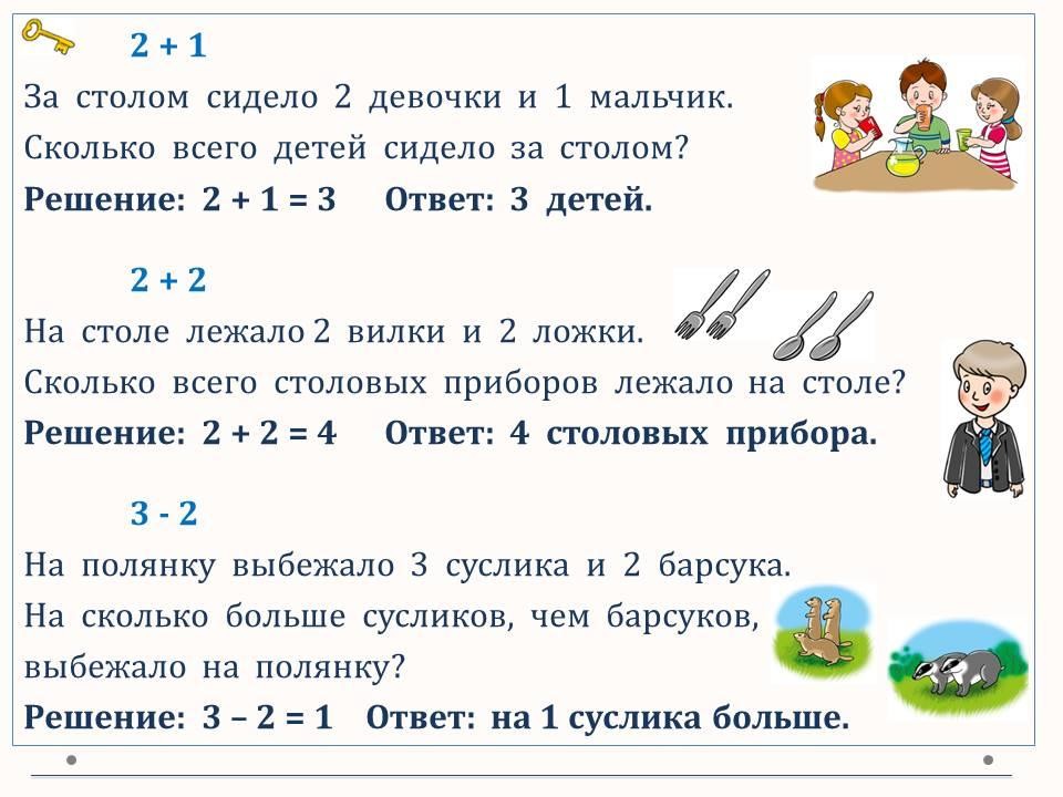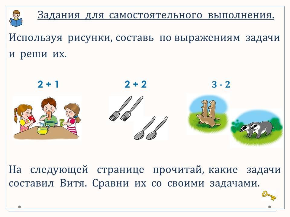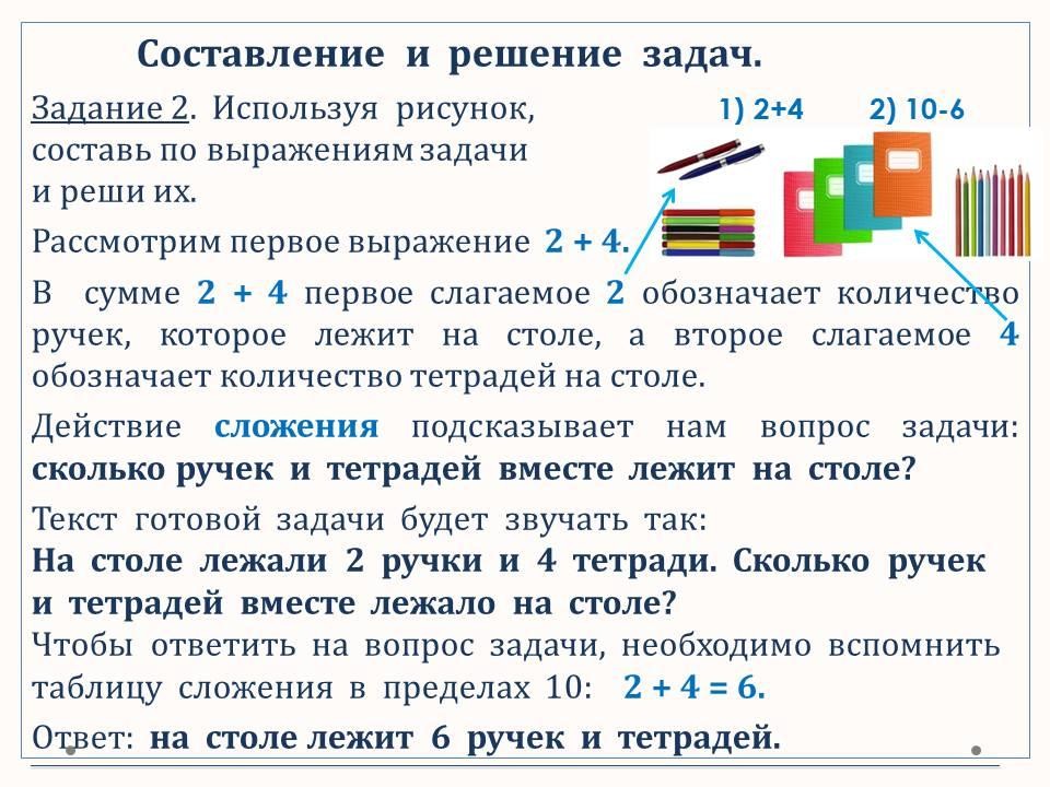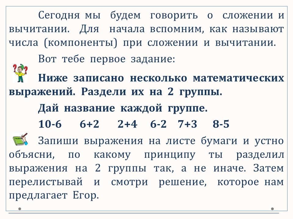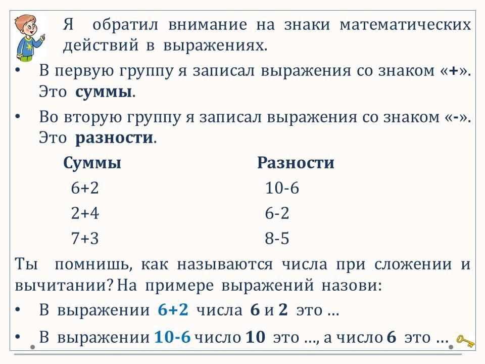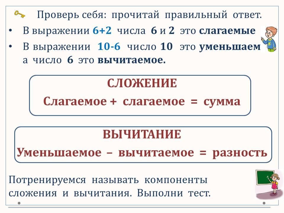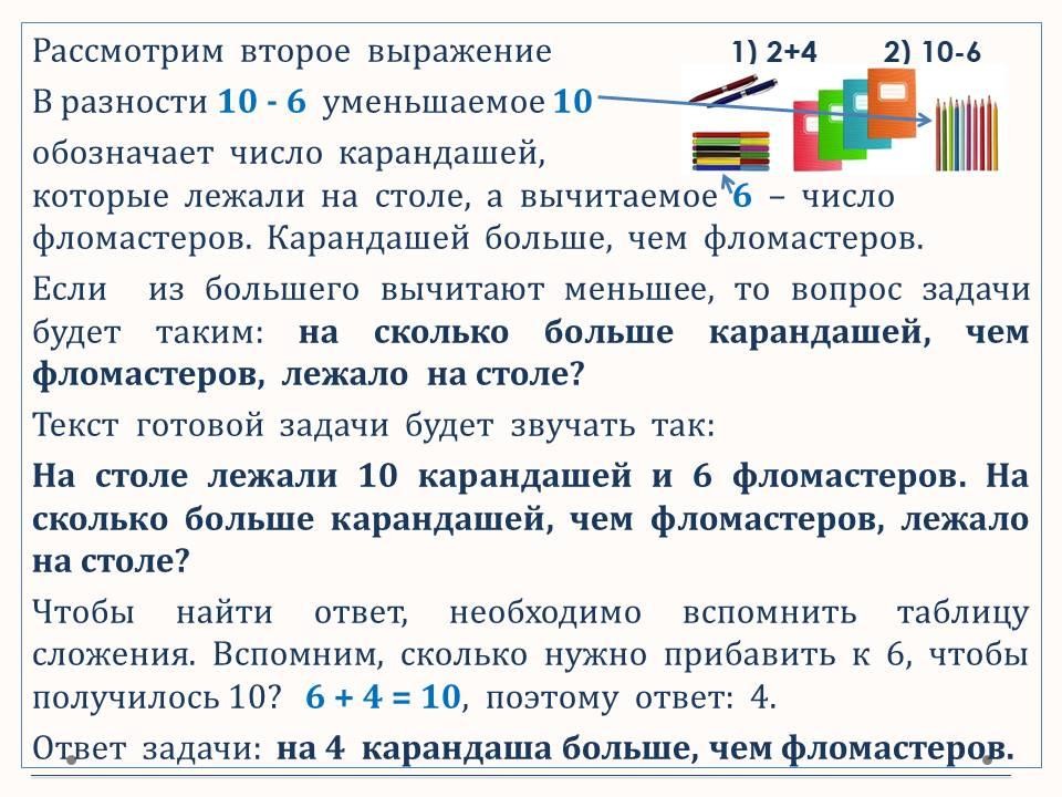 Повторяем термины при сложении и вычитании. Составляем и решаем задачи по картинкам и выражениям.