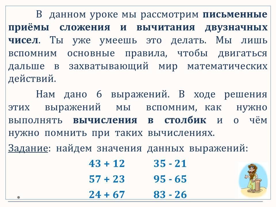 Повторяем письменные приёмы сложения и вычитания - сложение и вычитание в столбик