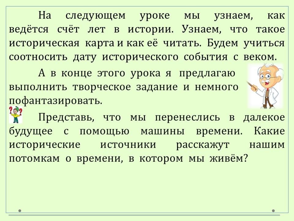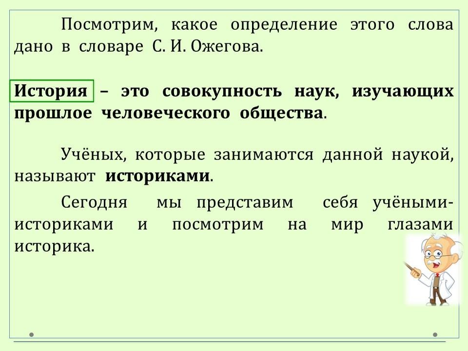 В данном уроке учимся описывать мир с точки зрения историка.