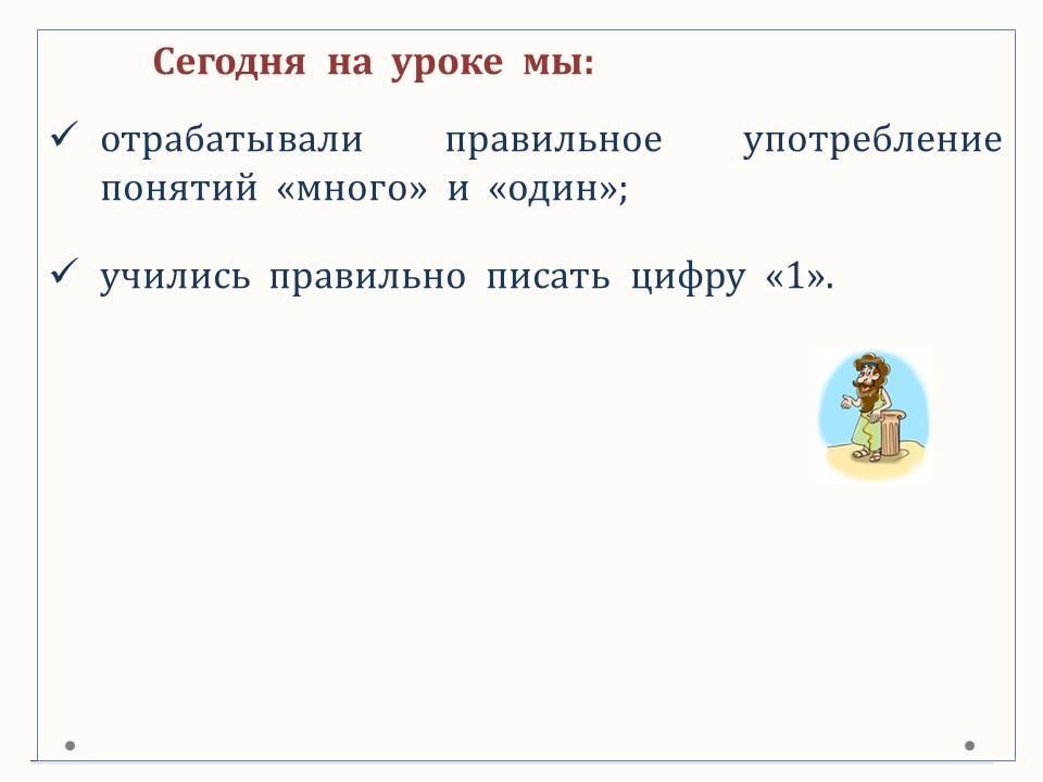 Работаем с понятиями "много", "один". Учимся правильно писать цифру 1.