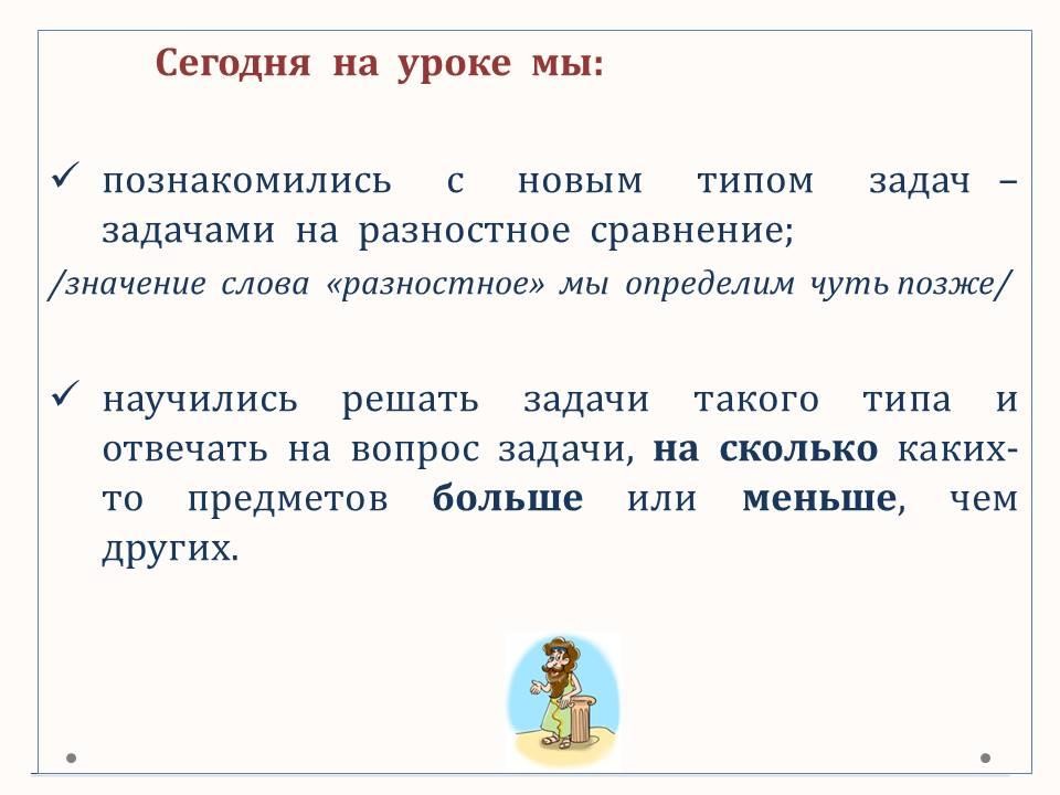 Программа 1 класса ОШ. В данном уроке будем учиться решать задачи на разностное сравнение.