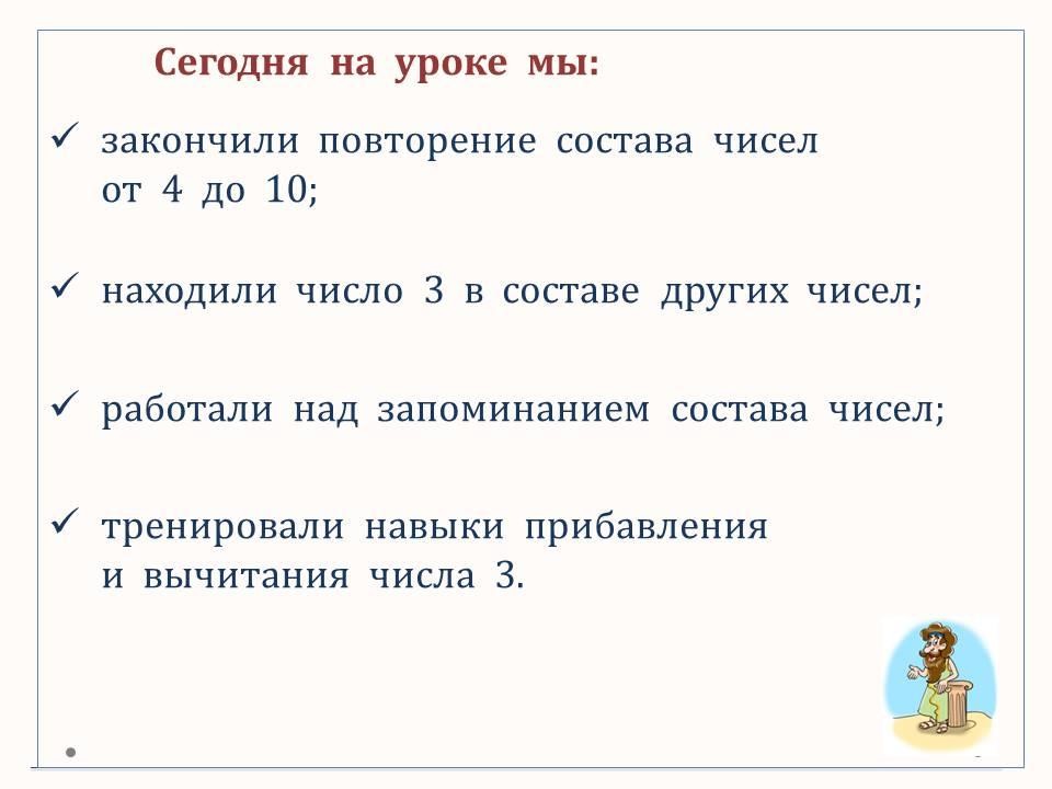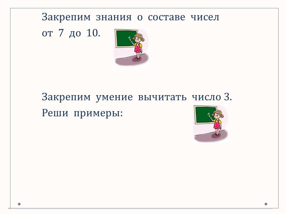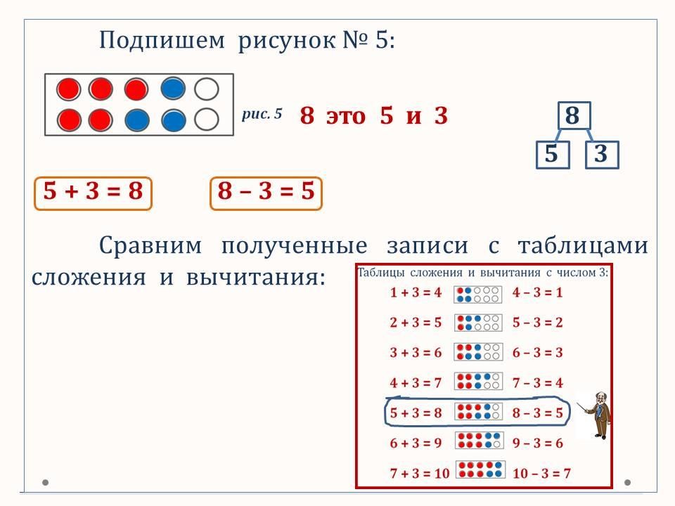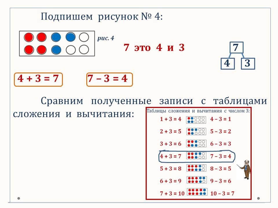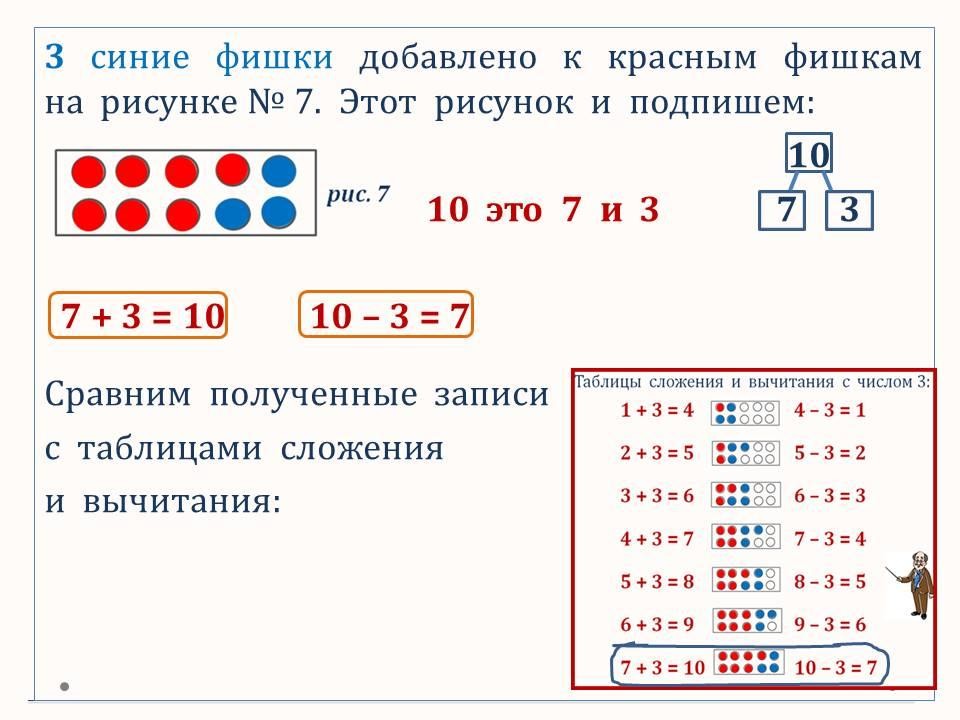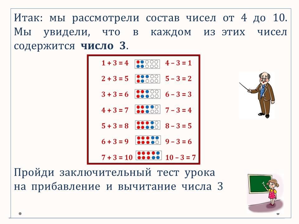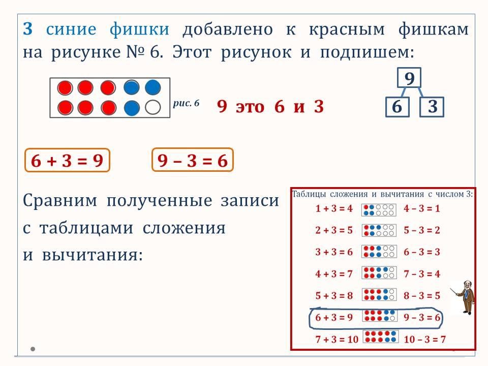 Программа 1 класса ОШ. В данном уроке подкрепляем таблицы сложения и вычитания с числом 3 знаниями состава чисел первого десятка.