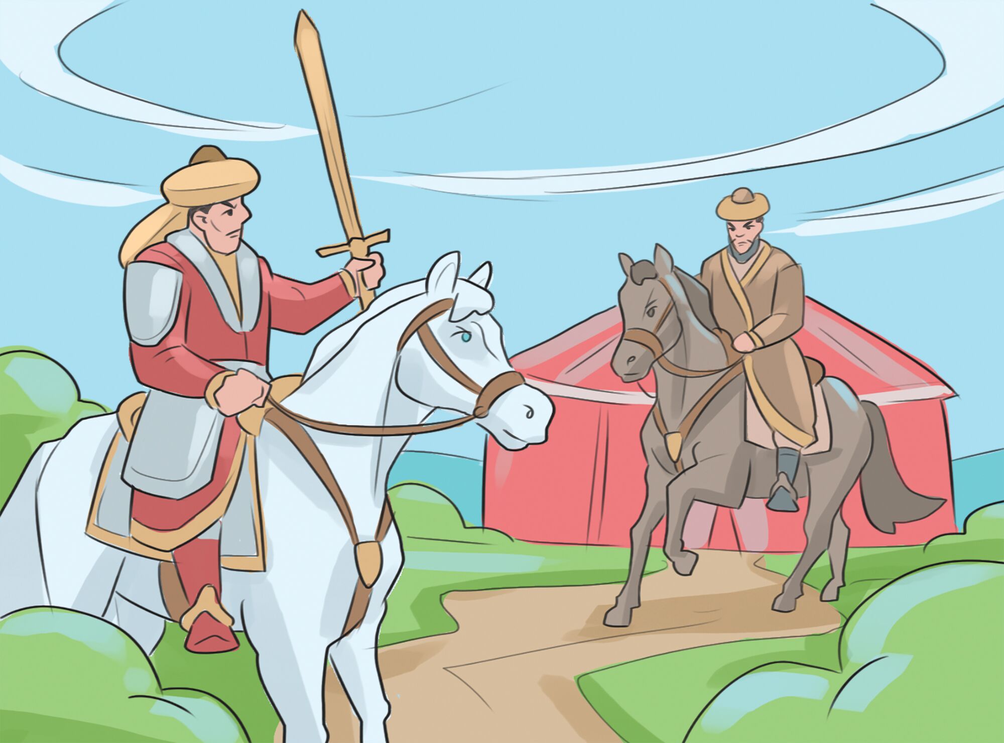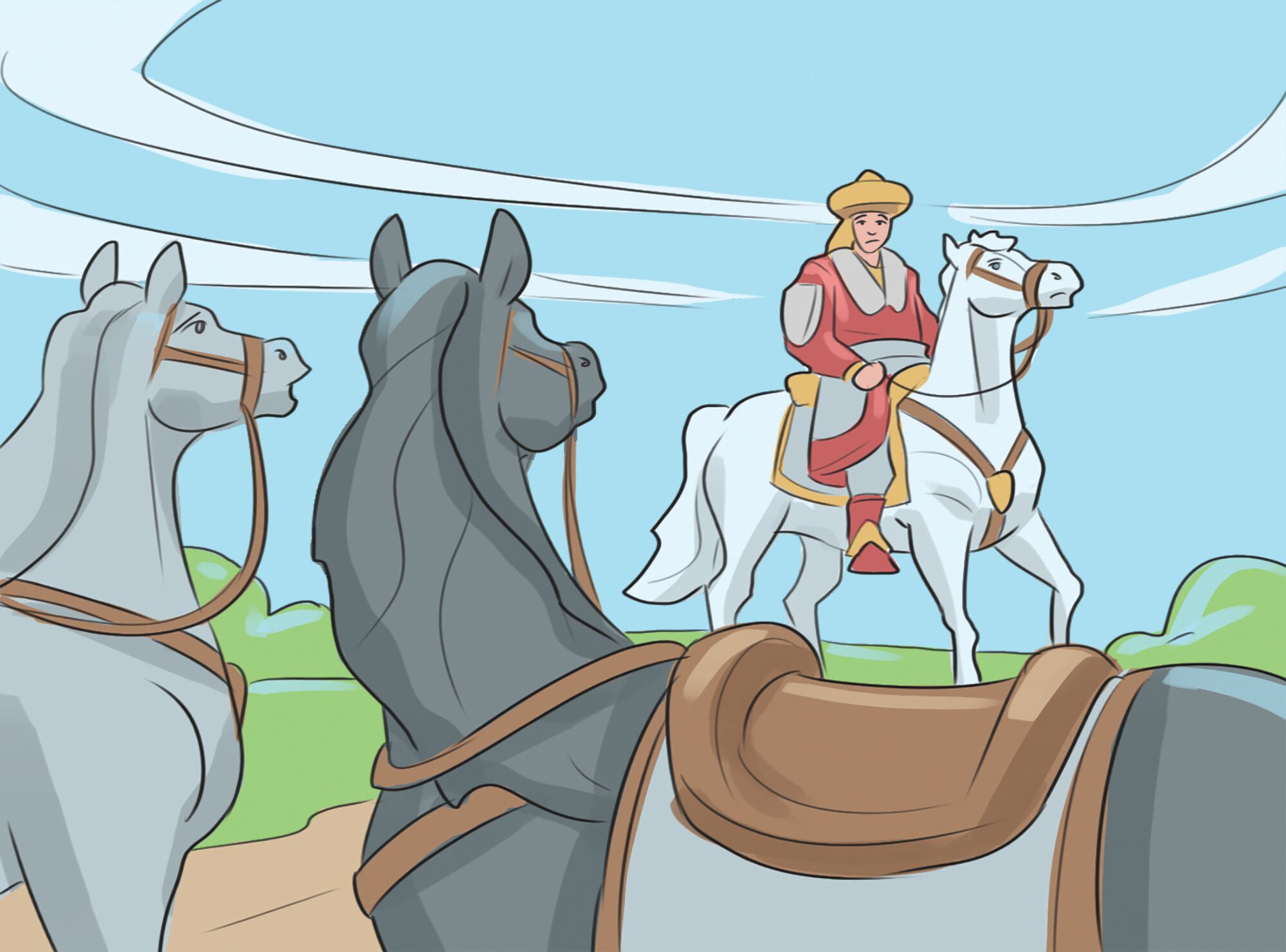 История о том, как богатырь Чемид-Чудзин богатырского коня добыл и поехал подвиги совершать.