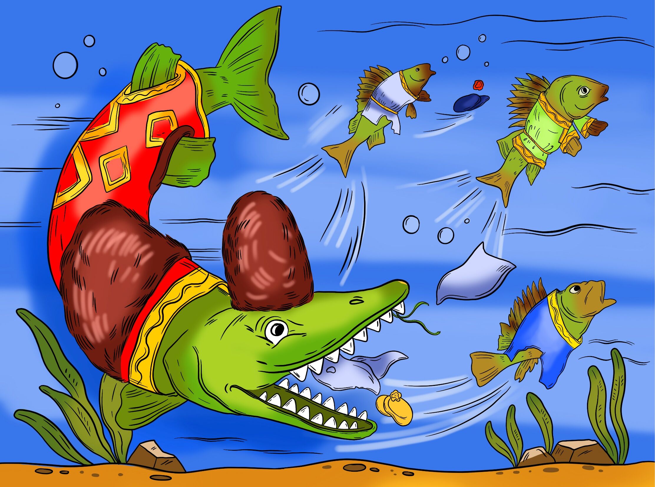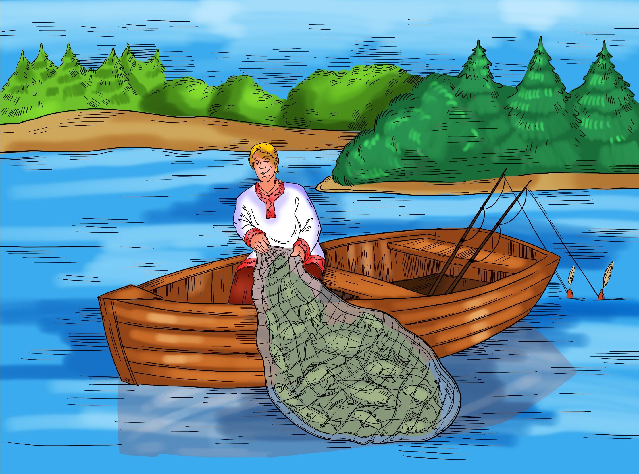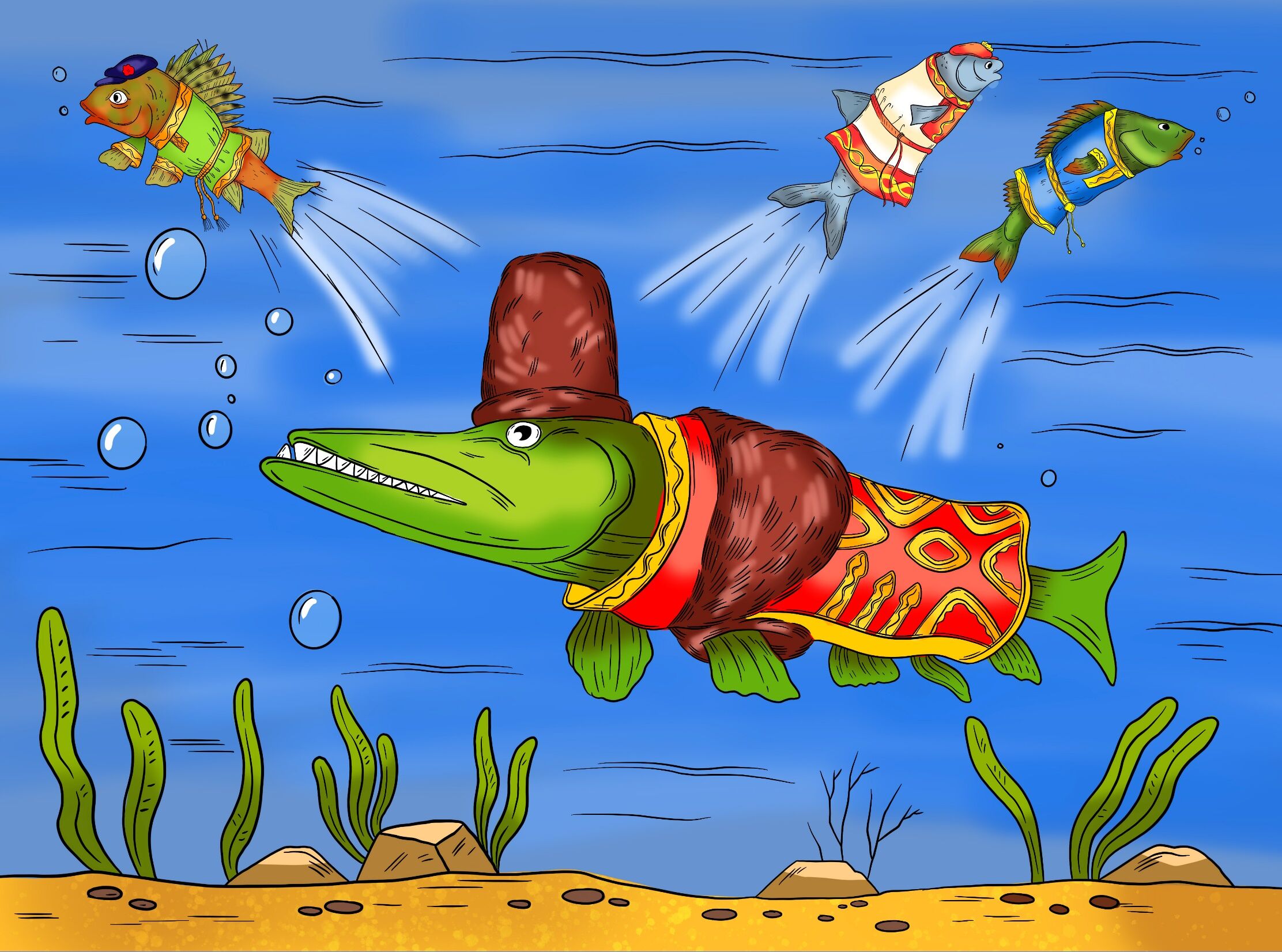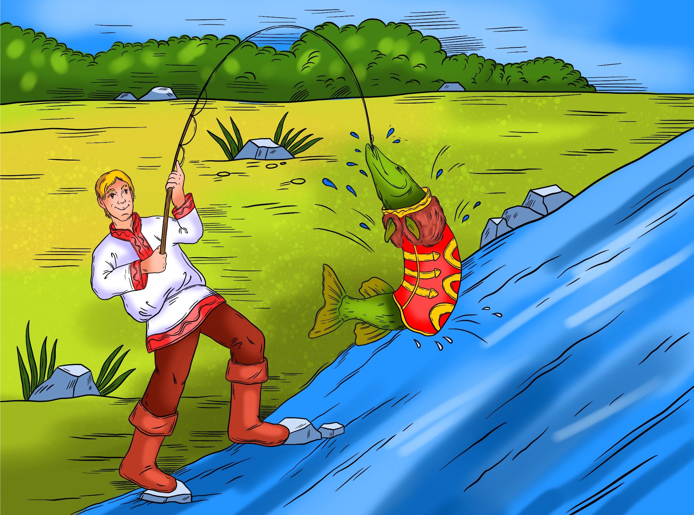 Уродилась в реке Шексне не в меру зубастая щука. Стала хищница мелкую рыбёшку поедать, речной народ тиранить. Долго терпели окуни, лещи да ерши, а потом собрались на совет, стали решать, как щуку наказать.