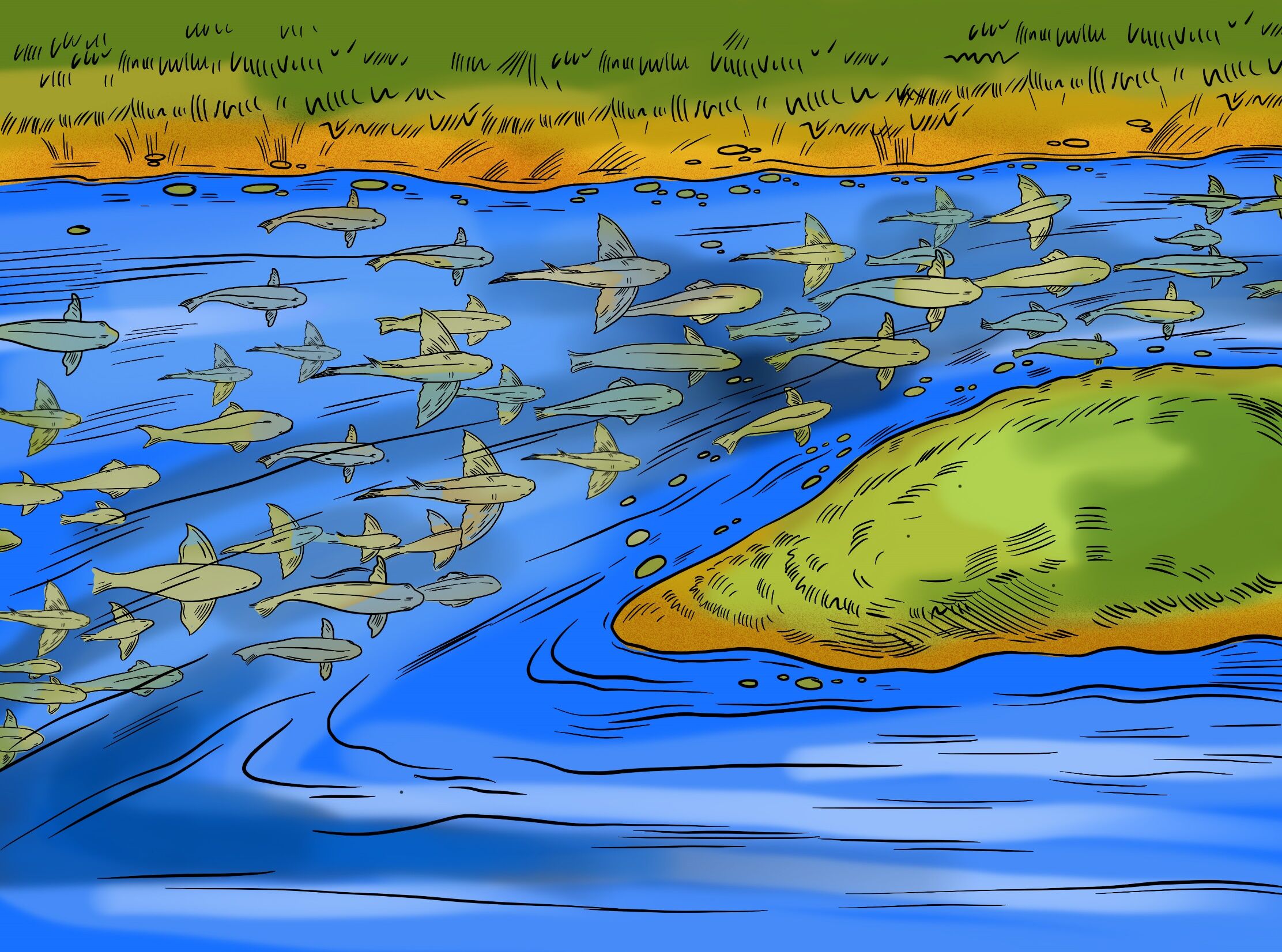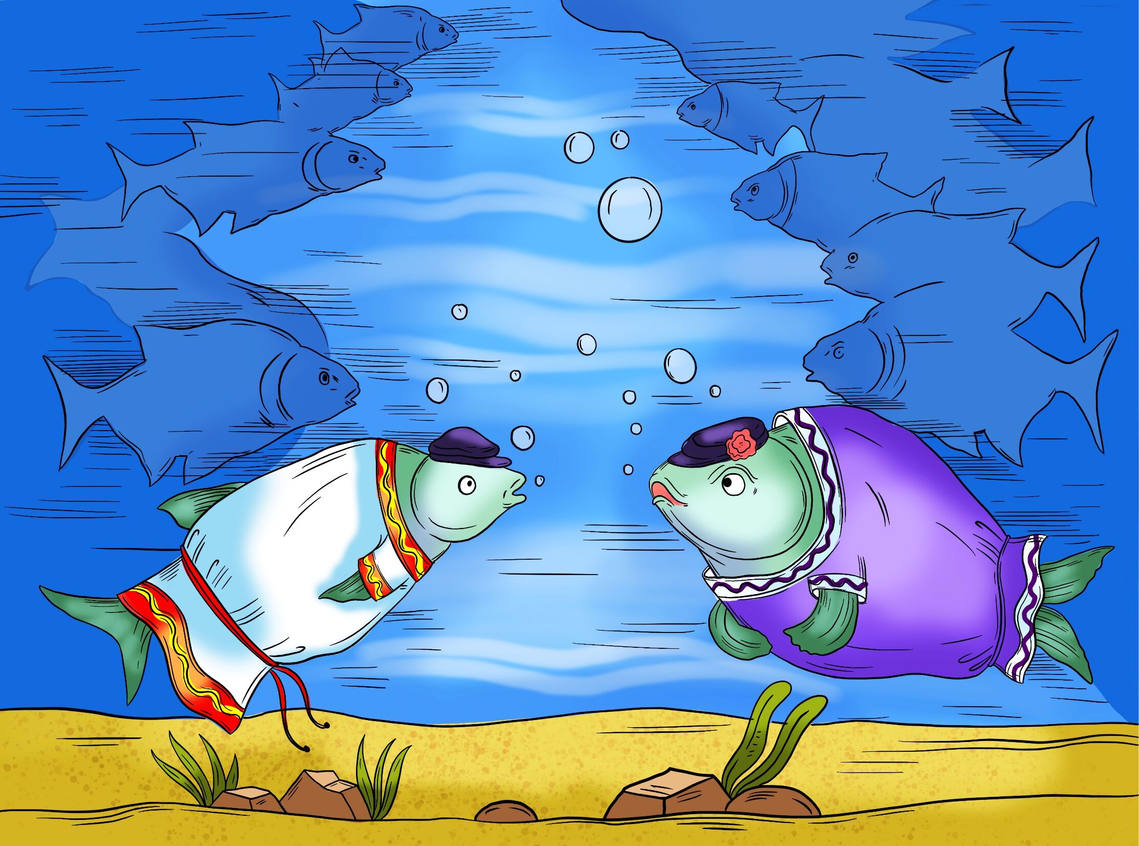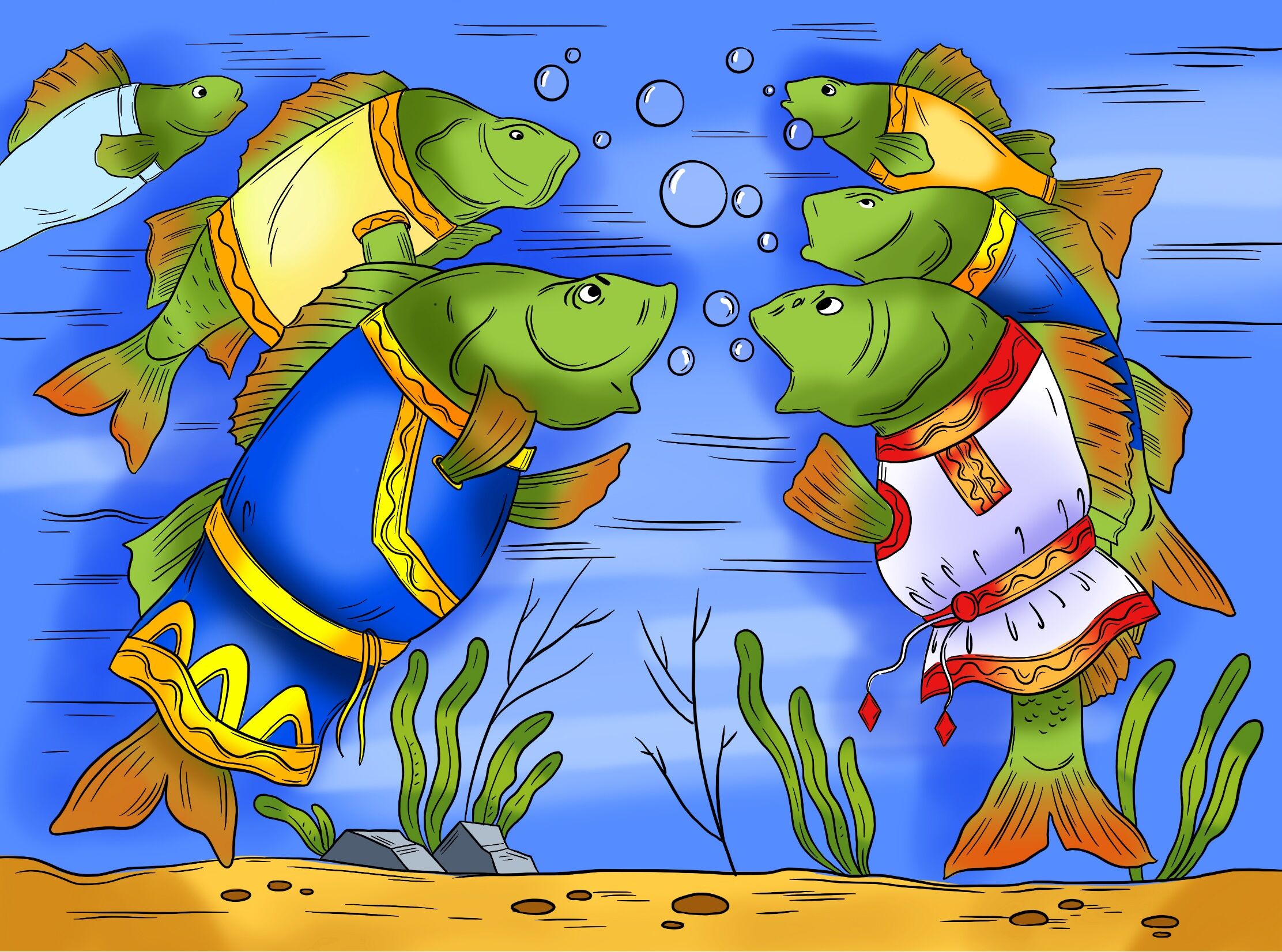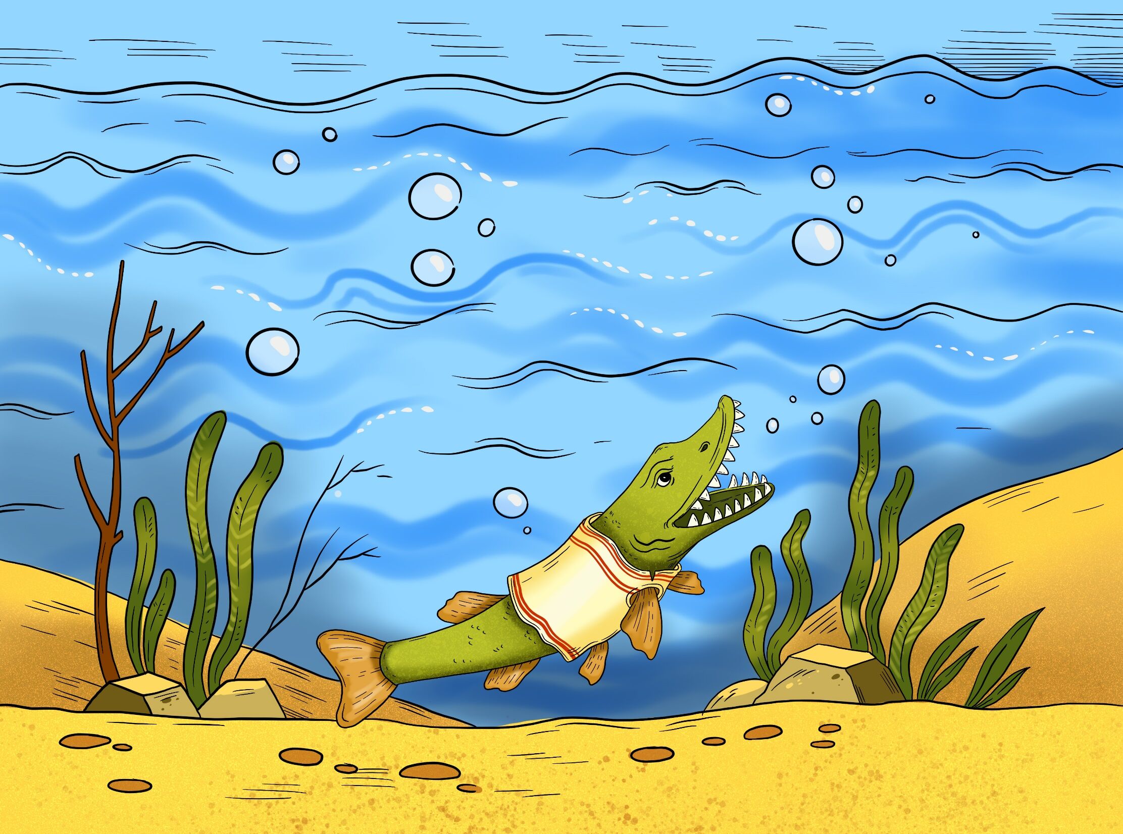 Уродилась в реке Шексне не в меру зубастая щука. Стала хищница мелкую рыбёшку поедать, речной народ тиранить. Долго терпели окуни, лещи да ерши, а потом собрались на совет, стали решать, как щуку наказать.