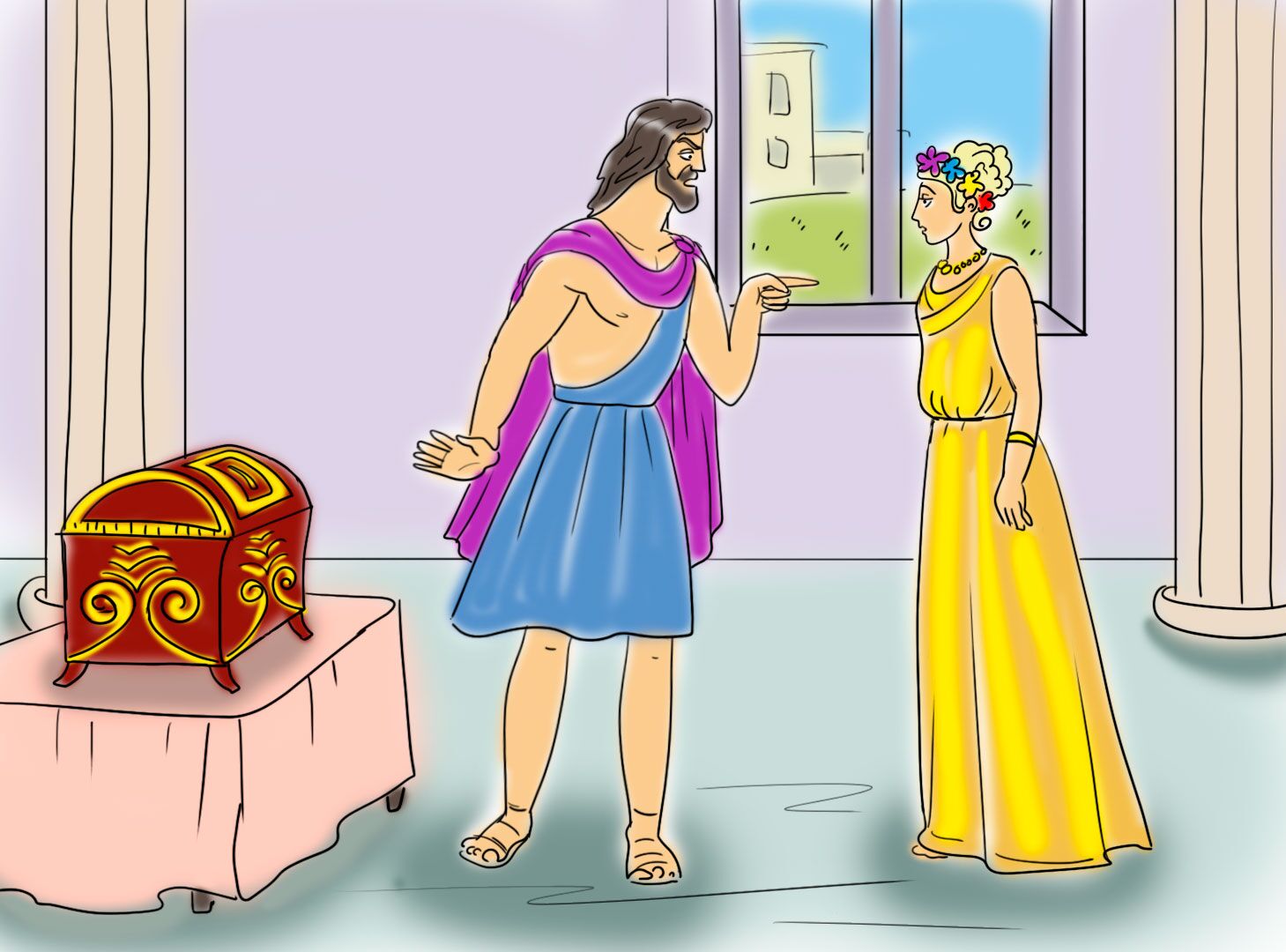 История о том, как боги создали Пандору и о том, как она открыла злополучный ящик.