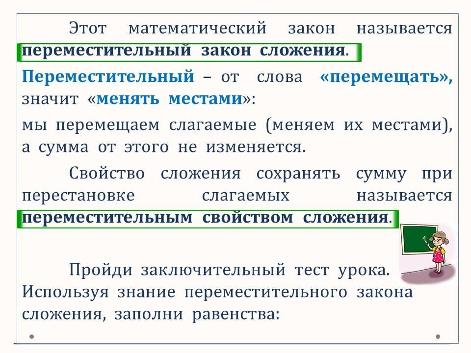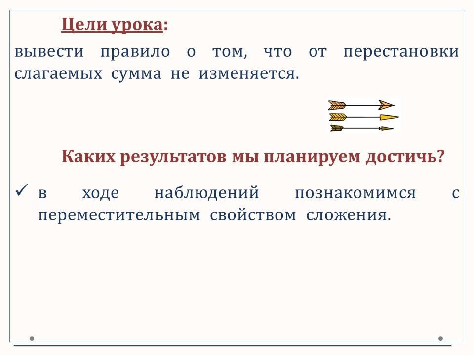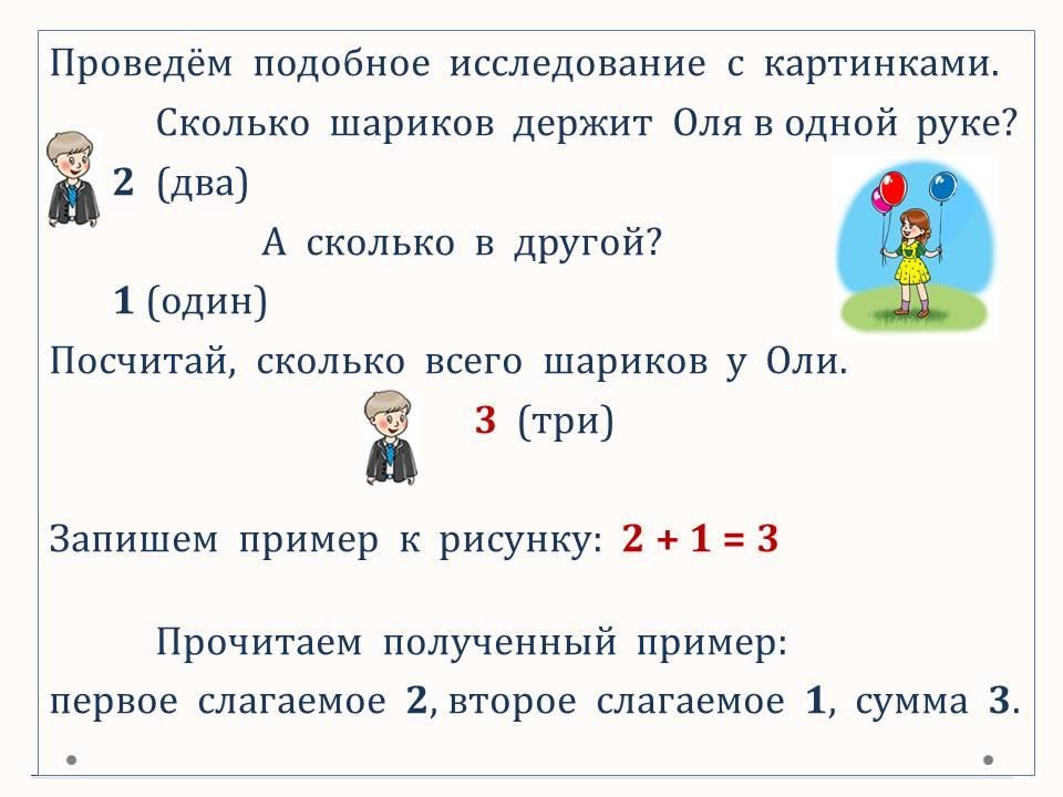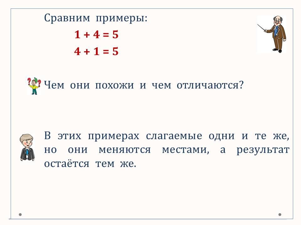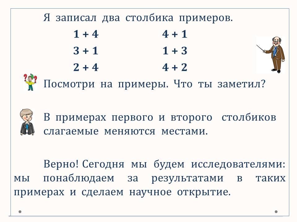 Программа 1 класса ОШ. В данном уроке в ходе наблюдений выводим переместительный закон сложения