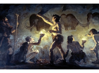 Именно в ледниковый период человек начал хоронить умерших. Это значит, что люди осознали свою смертность и задумались о том, что будет после смерти. Так зародились первые религиозные представления — вера в высшие силы, которые управляют рождением и смертью, природой и судьбой. Эти представления окончательно отделили человека от животного мира. С этого момента учёные и называют его «homo sapiens» — «человек разумный».Примерно в тот же период появилось первое искусство. В период от 40-го до 13-го тысячелетия до нашей эры люди начали создавать скульптуры и рисунки. Из камня и кости вырезали статуэтки женщин — так называемые «палеолитические венеры», символы плодородия и продолжения рода. Изображали и животных: мамонтов, оленей, носорогов.В Ка́повой пещере на Южном Урале (Башкирия) в 1959 году были обнаружены десятки рисунков с изображениями мамонтов, носорогов и лошадей. Самые древние из них относятся к эпохе палеолита. Похожие росписи найдены в пещерах юга Франции и Испании. Это говорит о том, что художественное мышление возникло у людей независимо в разных частях света — примерно в одно и то же время.