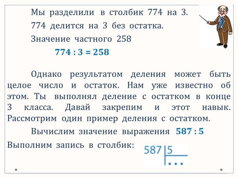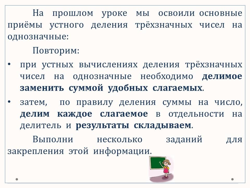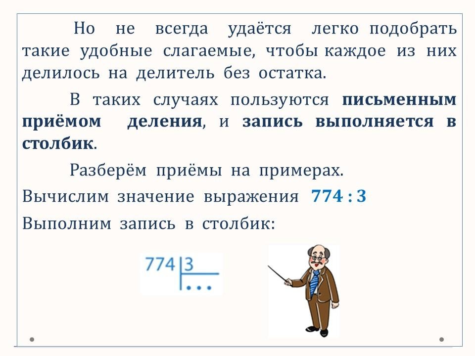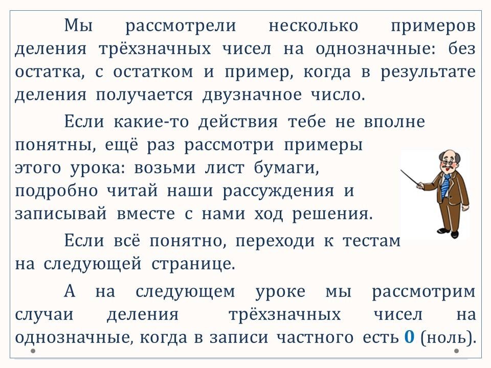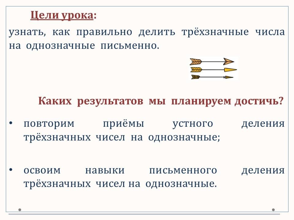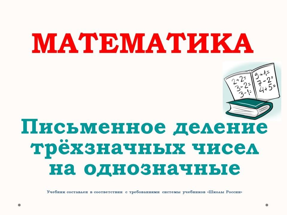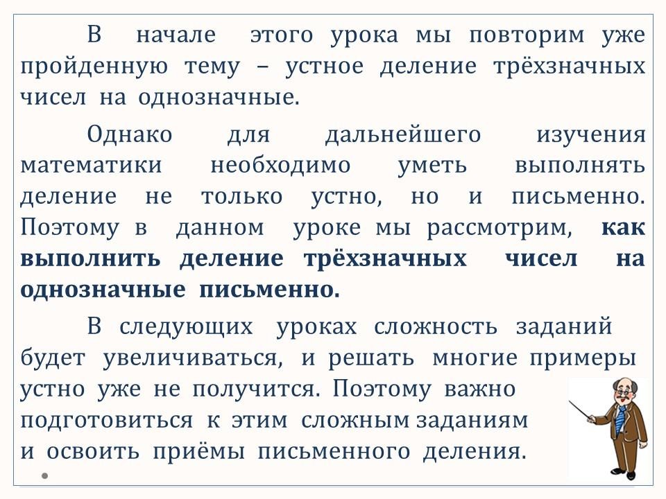 В данном уроке осваиваем письменные приёмы деления трёхзначных чисел на однозначные.