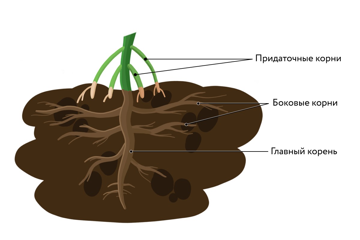 Корни, образующиеся на стеблях, называют придаточными.От главного и придаточных корней отходят боковые корни.