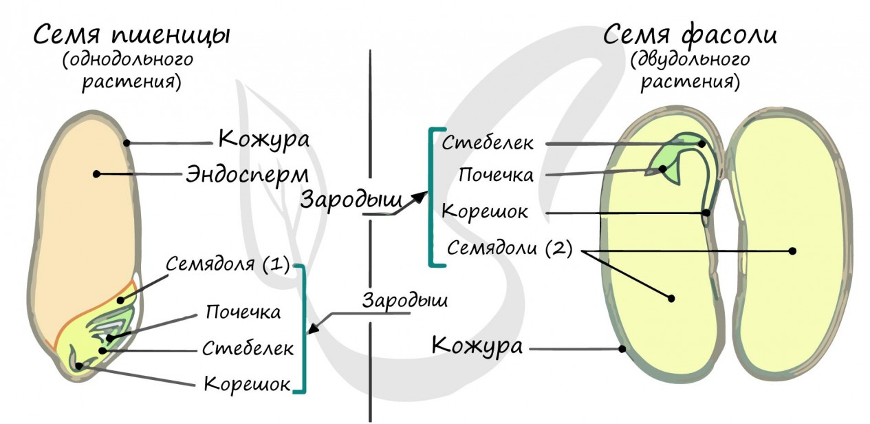 Жизнь цветкового растения начинается с семян.Семя состоит из кожуры, зародыша и эндосперма.
