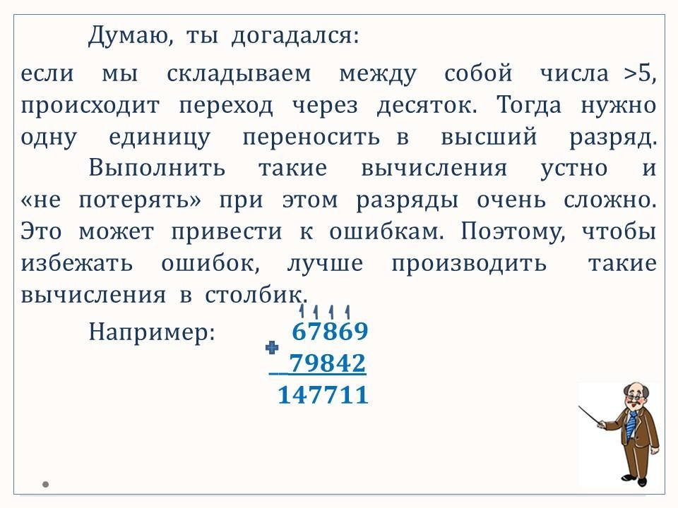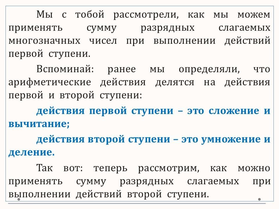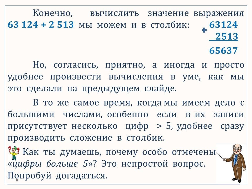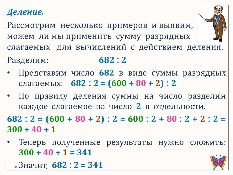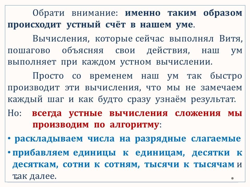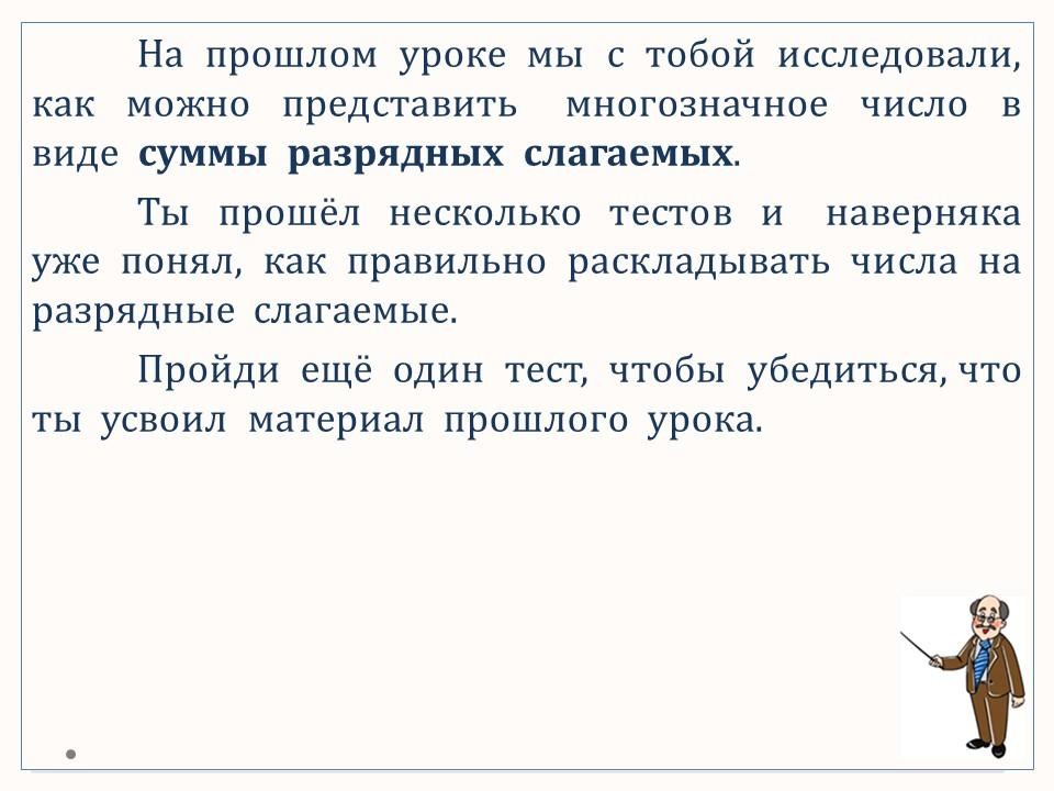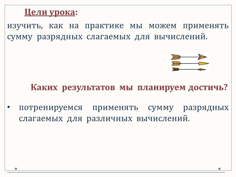 Продолжаем тренировать умение представлять многозначные числа в виде суммы разрядных слагаемых и учимся применять этот навык на практике для устных вычислений.