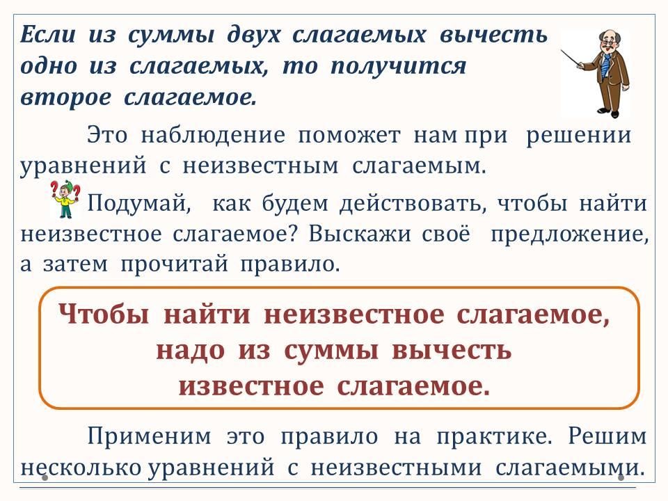 Решение уравнений с неизвестным слагаемым