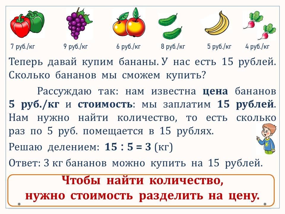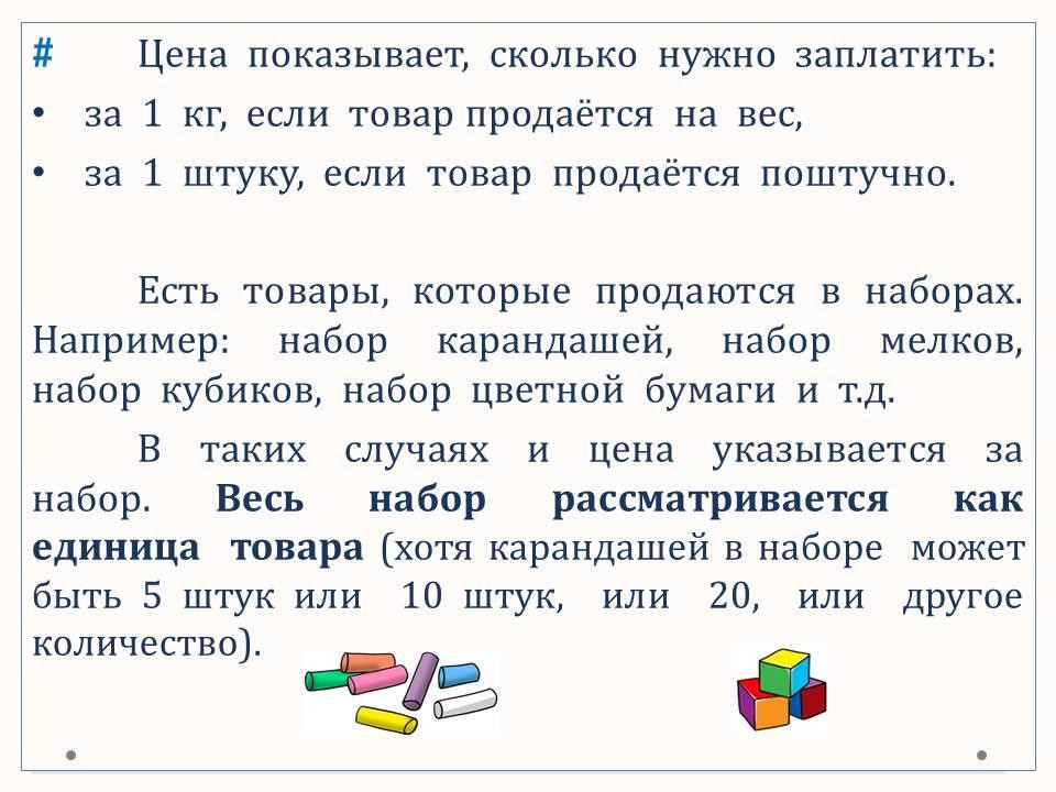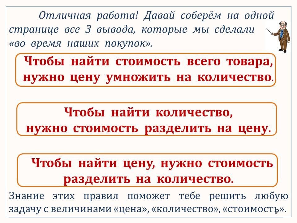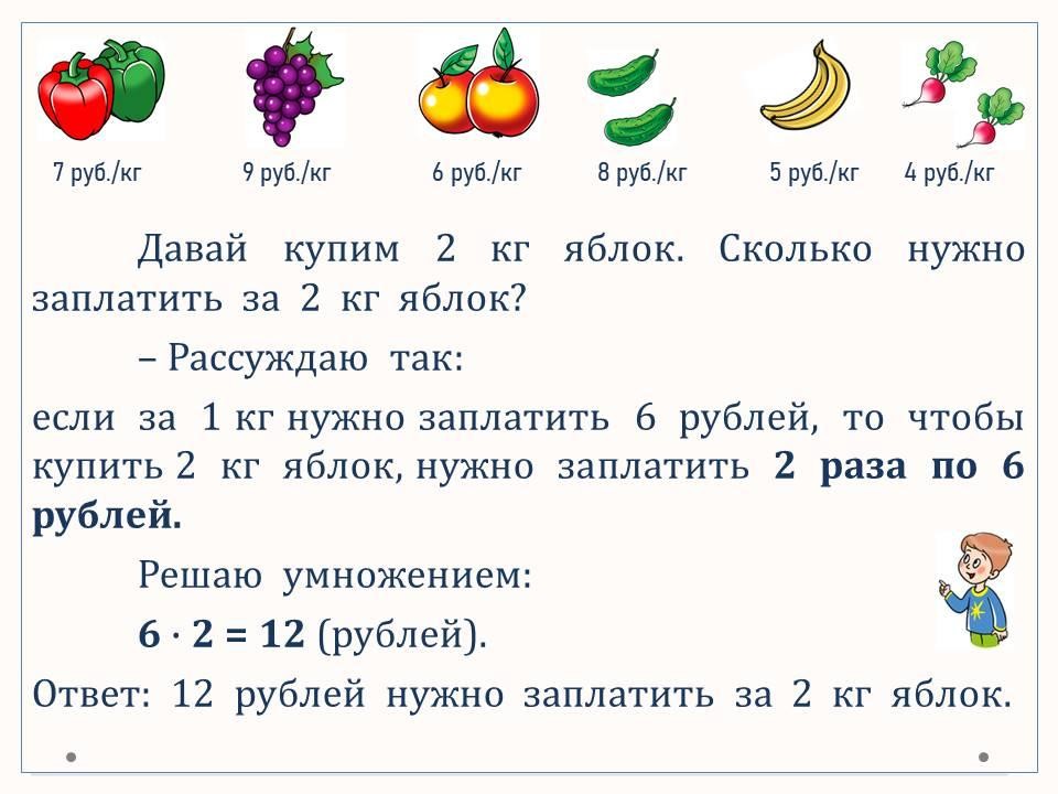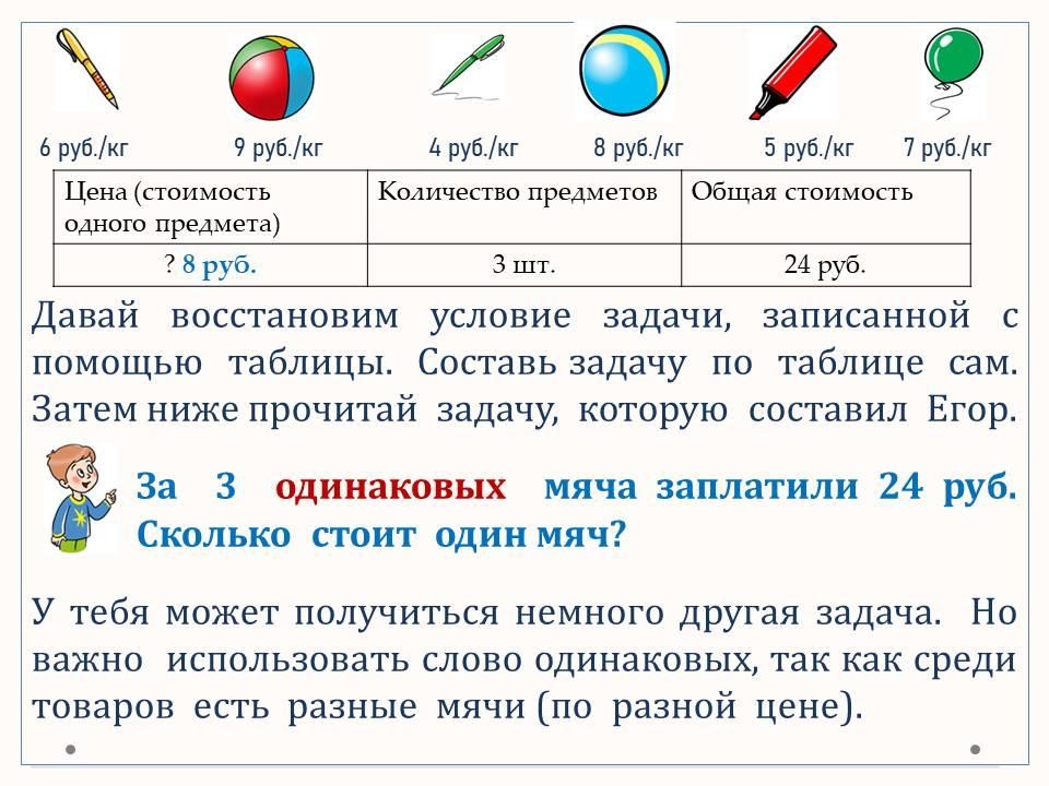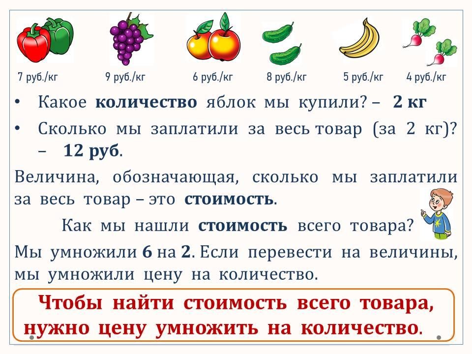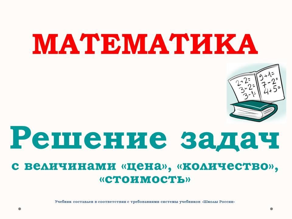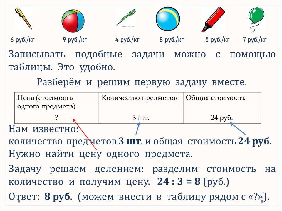 Решение задач с понятиями "цена", "количество", "стоимость".