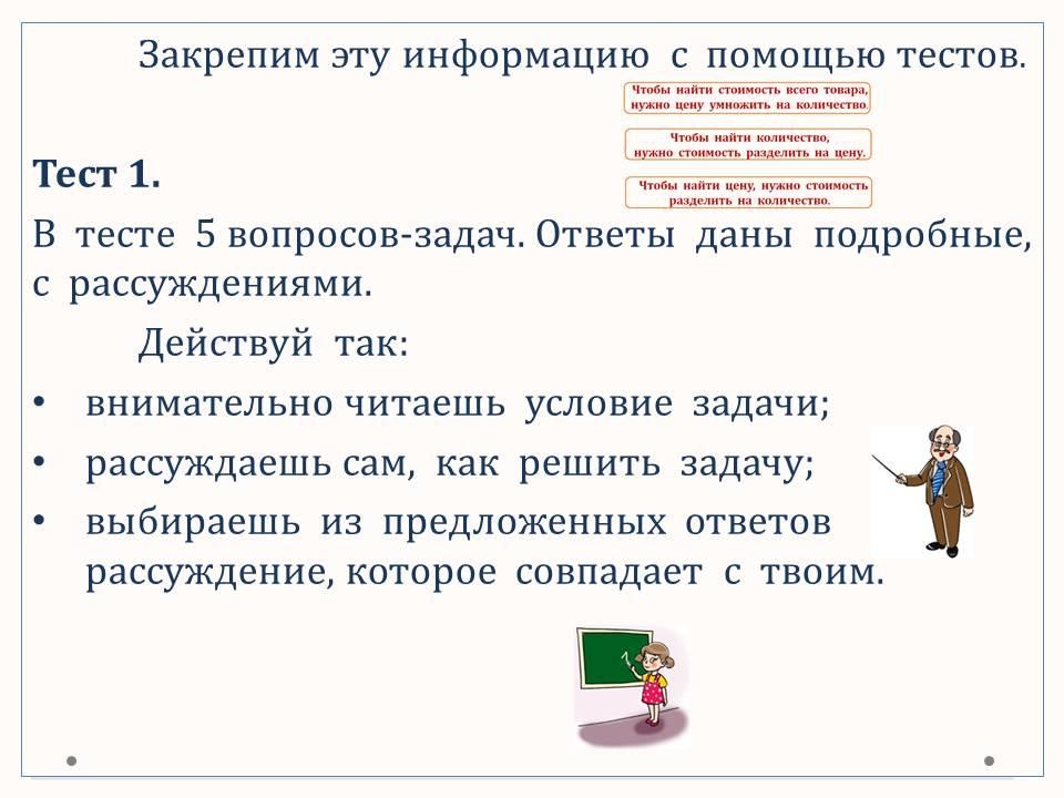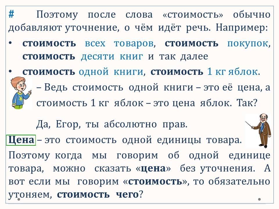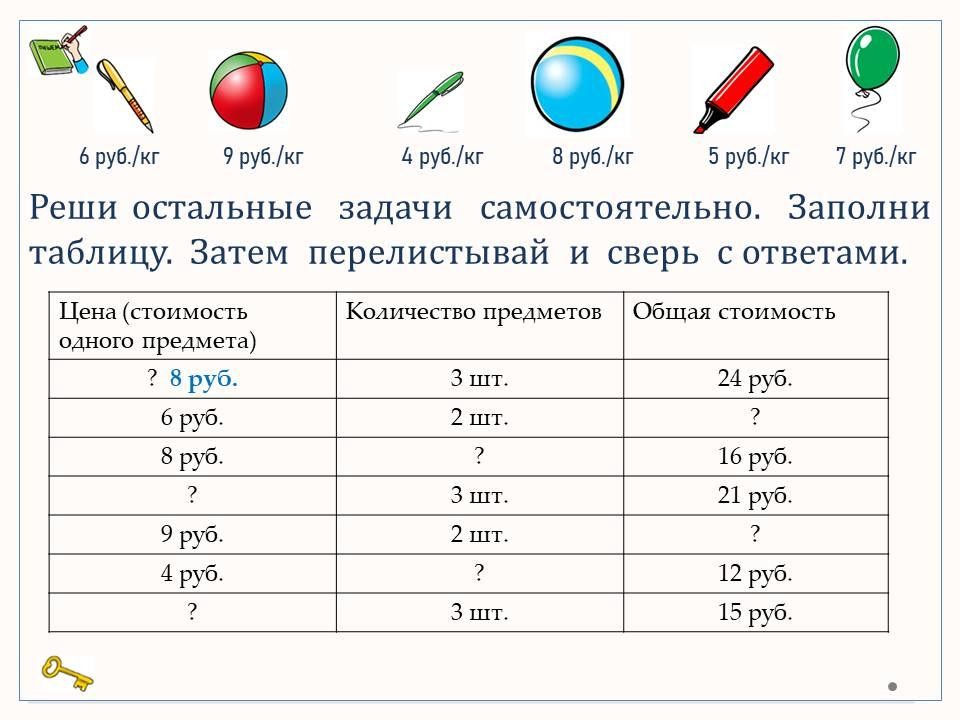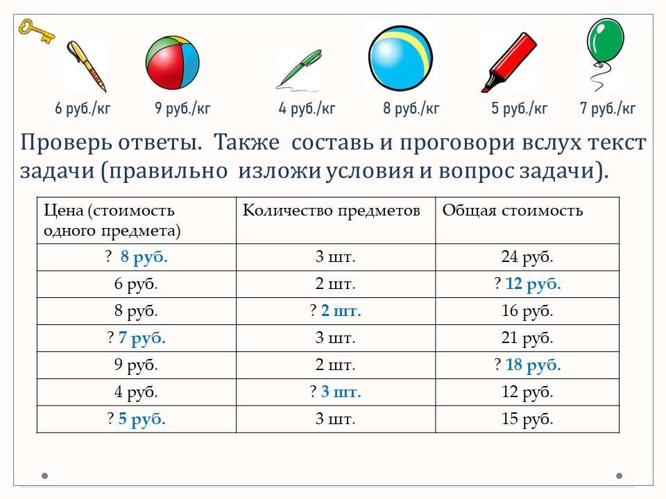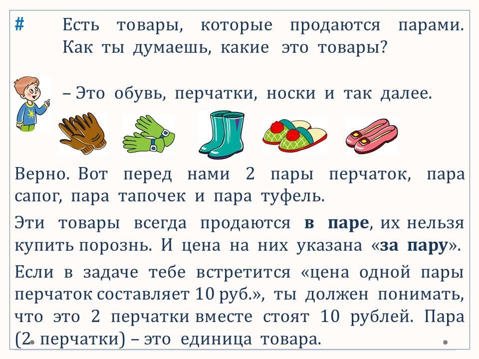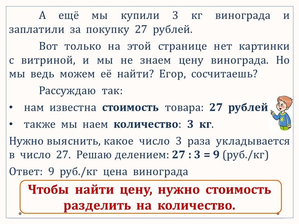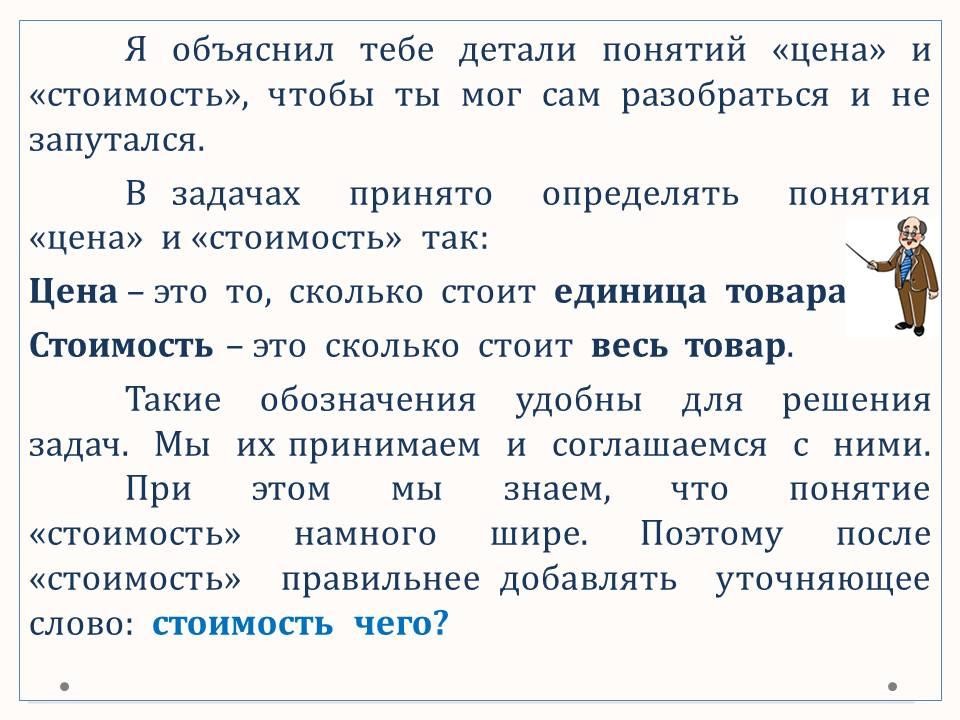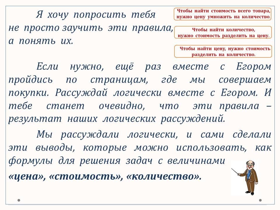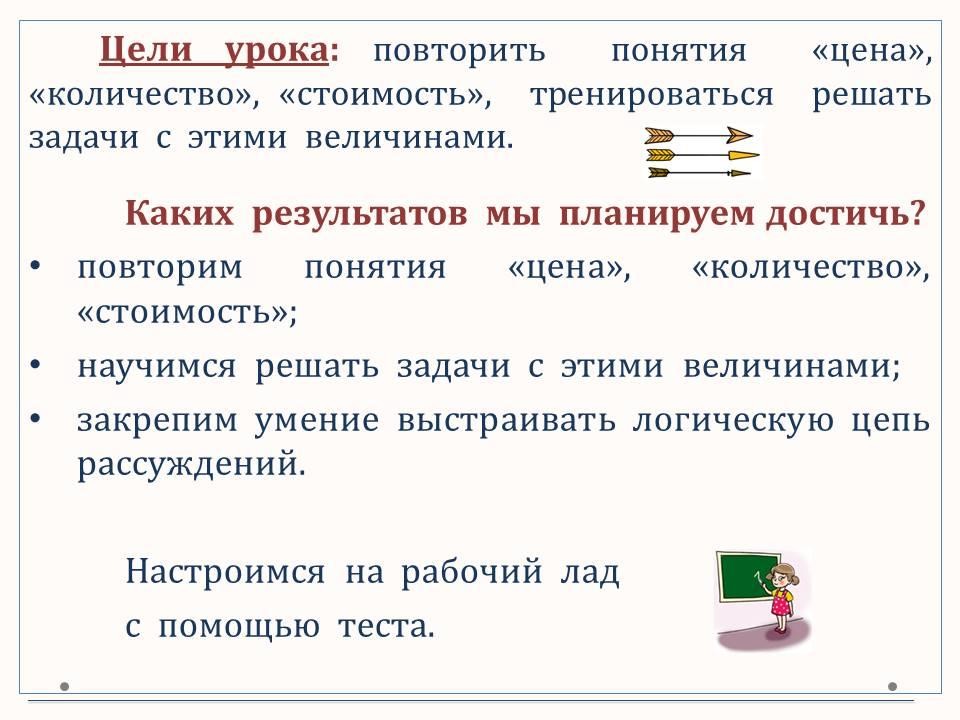 Решение задач с понятиями "цена", "количество", "стоимость".