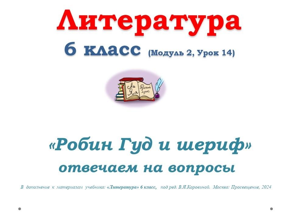 Вопрос № 3. Дайте развёрнутую устную характеристику Робин Гуда и шерифа. Заранее выпишите цитаты, которые вы используете при устном ответе. Ответ: Робин Гуд в балладе предстаёт как умный и хитрый человек, который умеет использовать свои таланты, чтобы справиться с трудными ситуациями. В начале он притворяется бедняком, чтобы выманить у шерифа информацию и понять его отношение. Когда шериф предлагает Робин Гуду стать палачом, Робин показывает свою решительность и верность своим принципам: «Я не был, шериф, никогда палачом, Ни разу не мылил петлю. И будь я в аду, коль на службу пойду К тебе, к твоему королю!» Робин Гуд также демонстрирует свою способность к руководству и командованию: «К тебе они в гости явились, шериф, И даром домой не уйдут.»