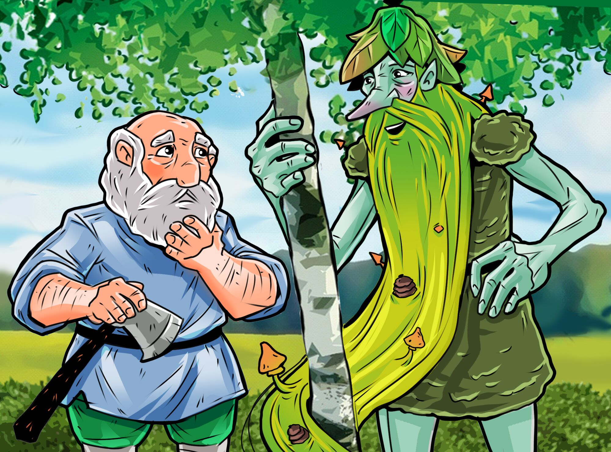Сломались как-то у старичка и старушки деревянные приладья – рабочий инструмент. Послала старушка старичка в лес, срубить деревце, чтобы инструмент починить. Старичок деревце нашёл, только топором замахнулся – леший явился. Сказал леший старичку, чтобы тот деревце пожалел, а взамен чего-то дорогого попросил. Чего же попросить старичку?
