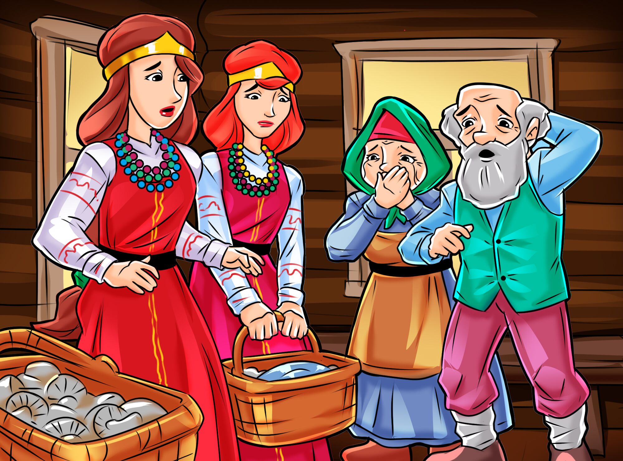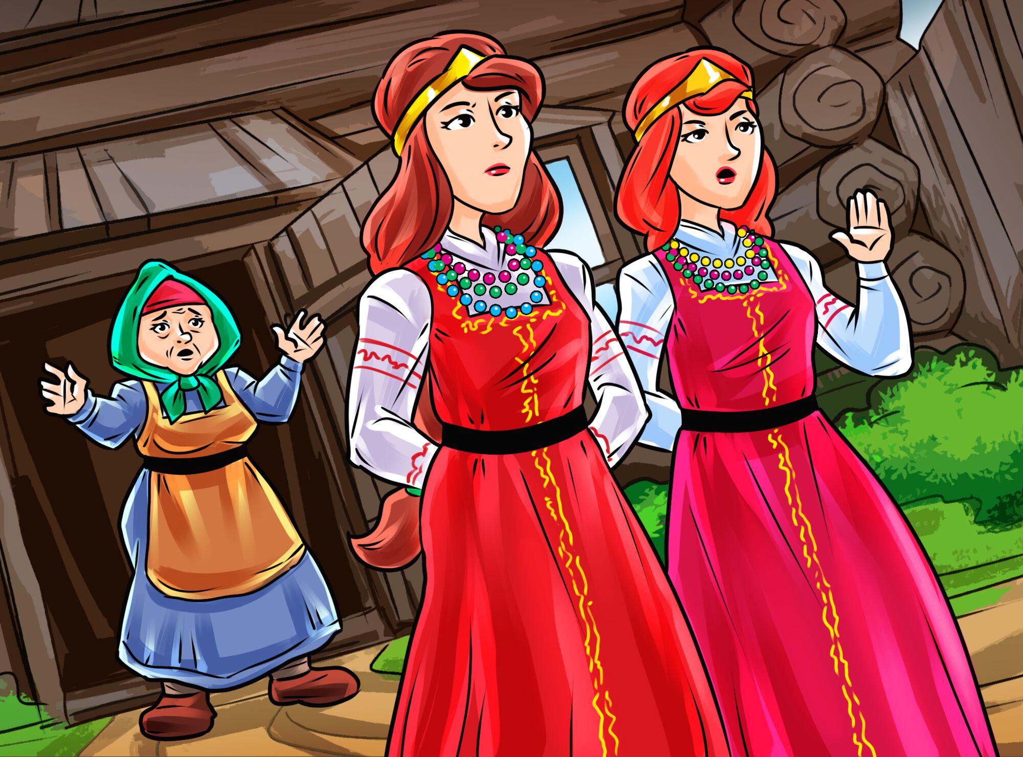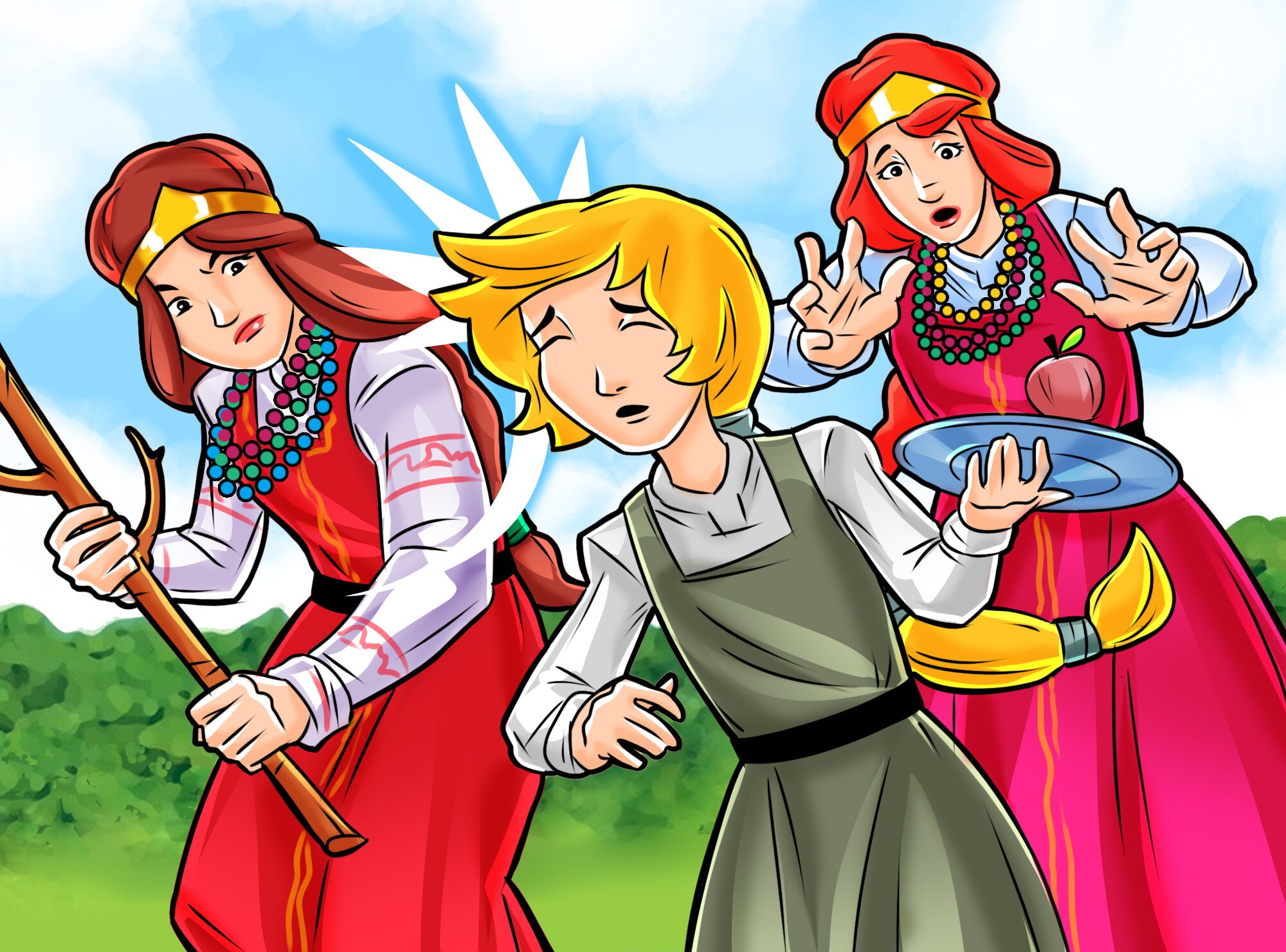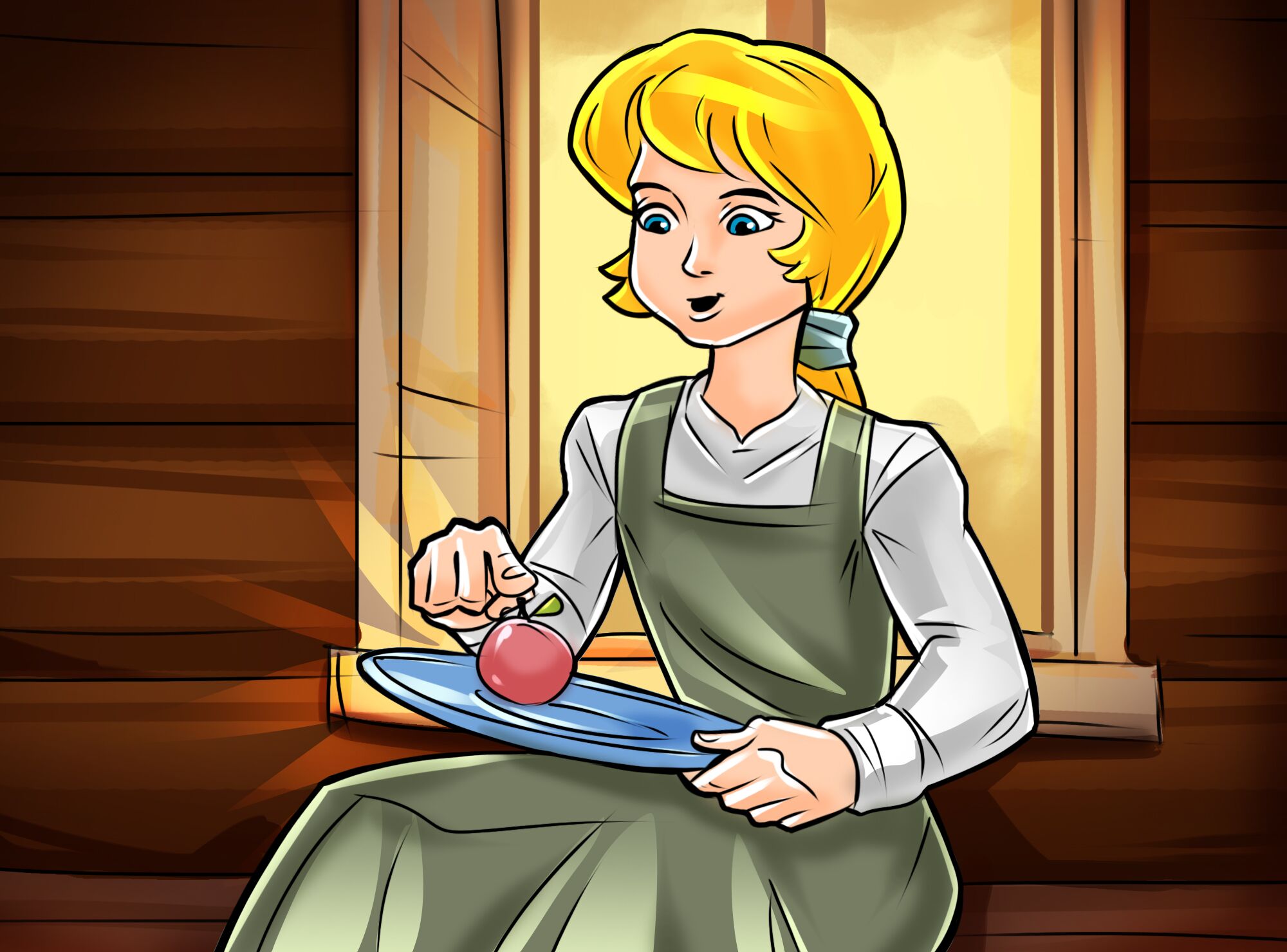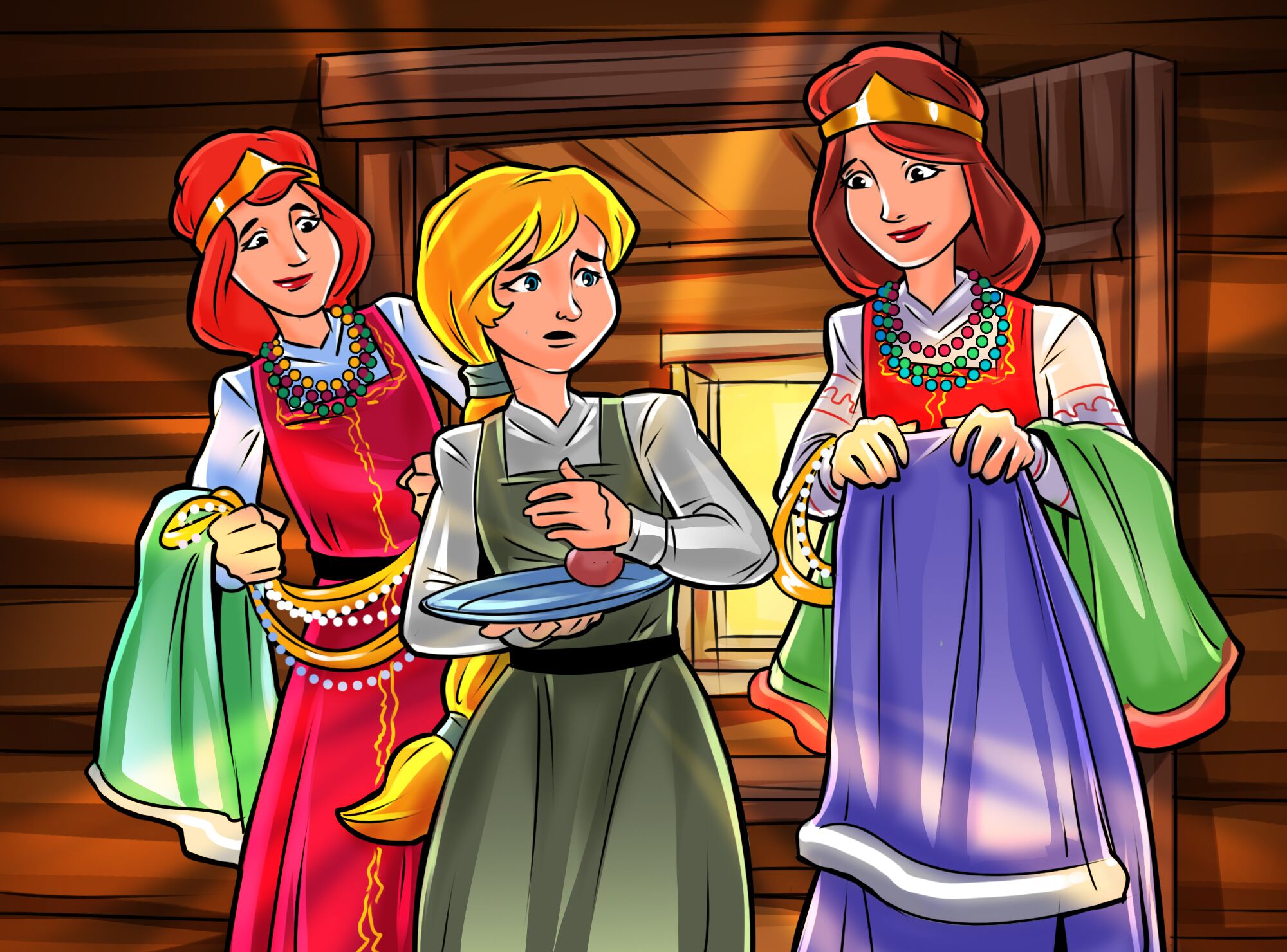 Привёз как-то Машеньке с ярмарки отец серебряное блюдечко и наливное яблочко. Покатила Машенька яблочко по блюдечку, сказала слова заветные – и явило блюдечко перед её взором бескрайние, прекрасные русские просторы. Сёстры старшие то диво увидали, и чёрная зависть их обуяла...