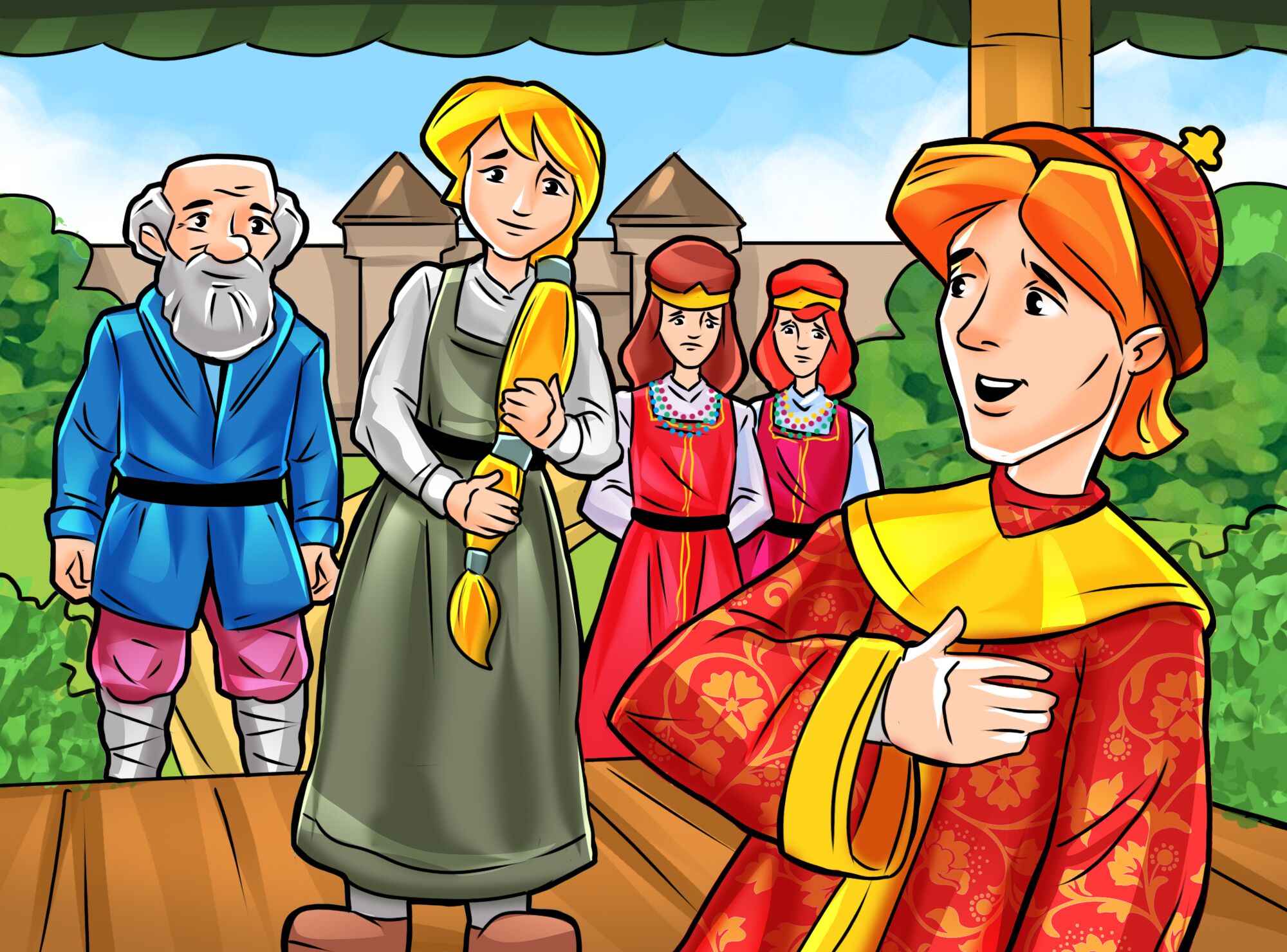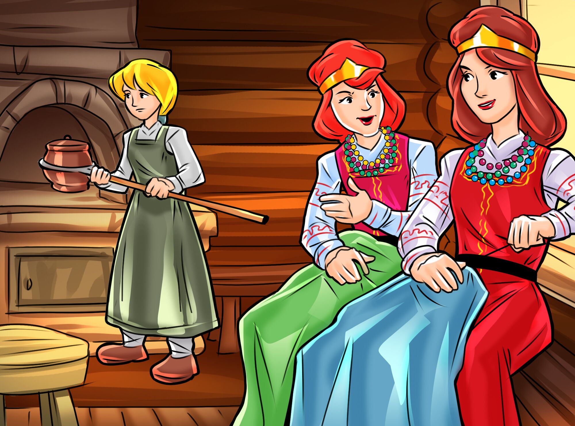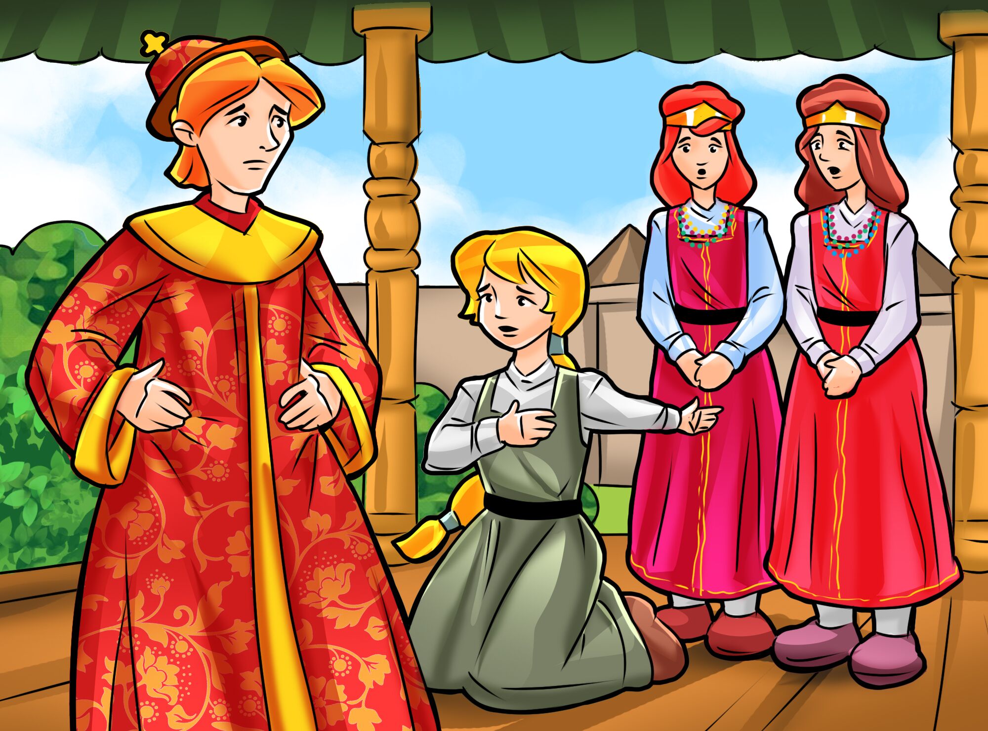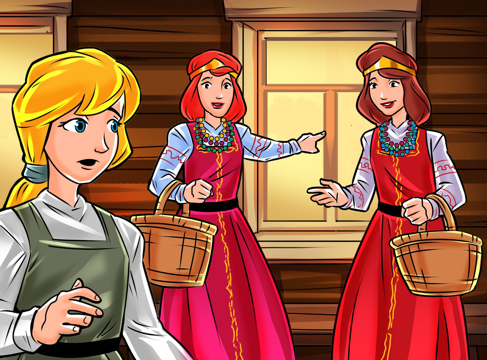 Привёз как-то Машеньке с ярмарки отец серебряное блюдечко и наливное яблочко. Покатила Машенька яблочко по блюдечку, сказала слова заветные – и явило блюдечко перед её взором бескрайние, прекрасные русские просторы. Сёстры старшие то диво увидали, и чёрная зависть их обуяла...