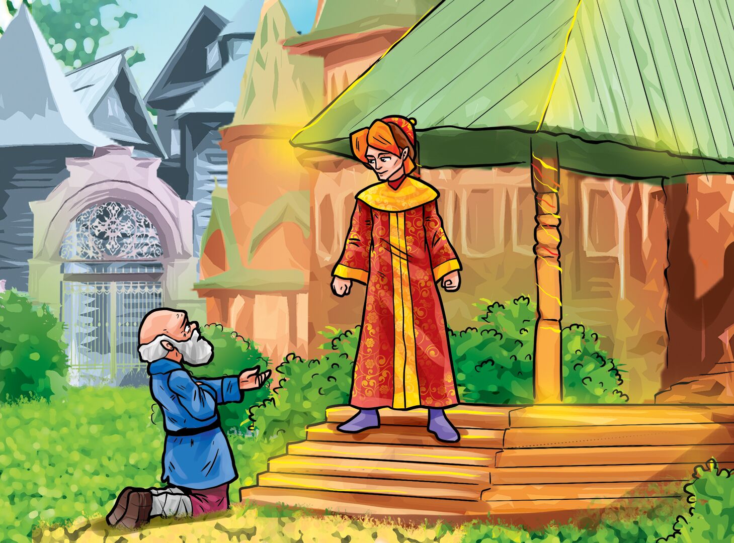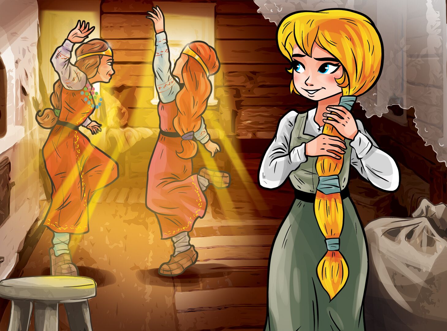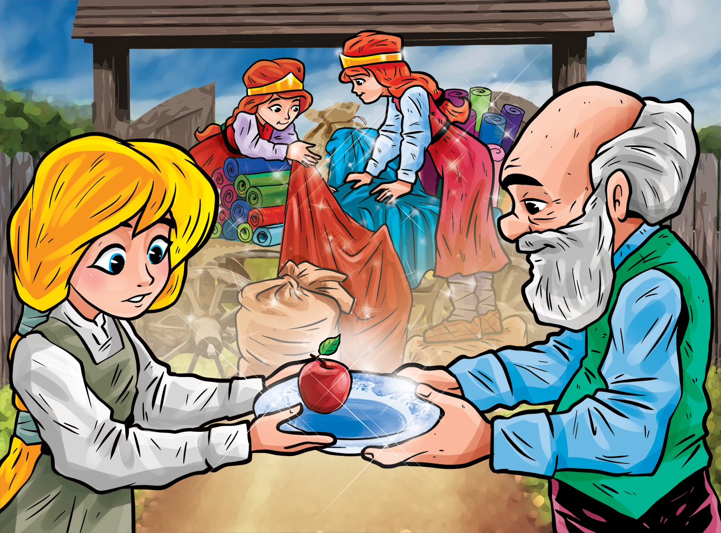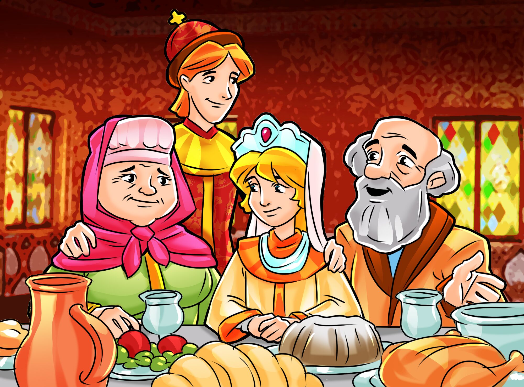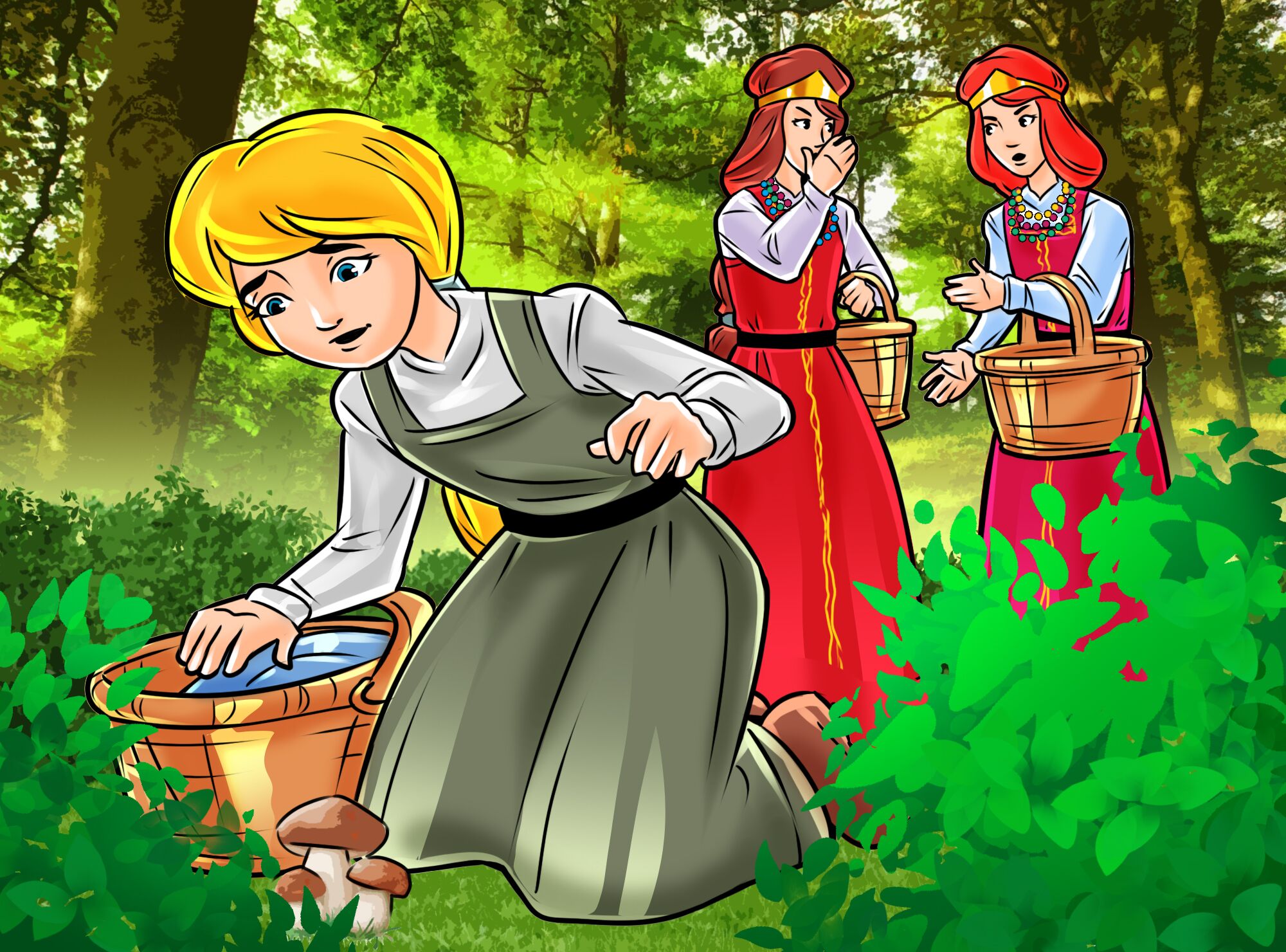 Привёз как-то Машеньке с ярмарки отец серебряное блюдечко и наливное яблочко. Покатила Машенька яблочко по блюдечку, сказала слова заветные – и явило блюдечко перед её взором бескрайние, прекрасные русские просторы. Сёстры старшие то диво увидали, и чёрная зависть их обуяла...